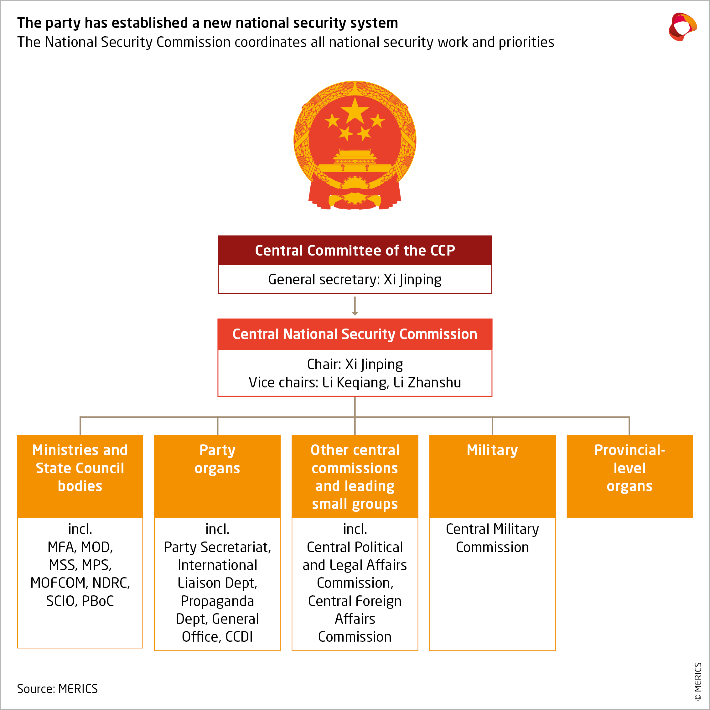 - The CCP has established a centralized and unified national security system built around the concept of “comprehensive national security”. Reaching into all areas of policy, the party aims to increase its control over both its internal and external environments.