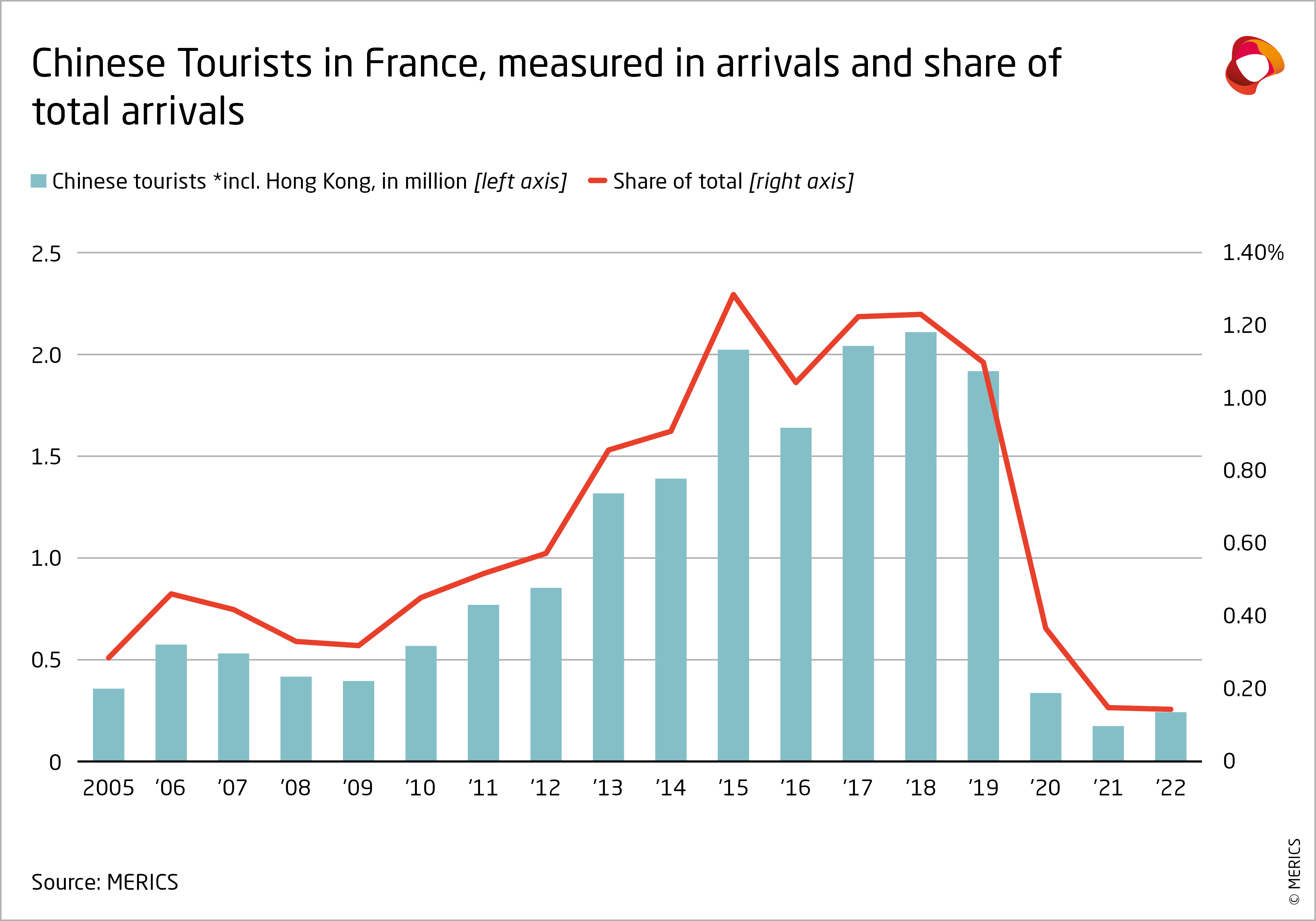 France was the most popular tourist destination in 2019: almost 2 billion visitors contributed EUR 3.5 billion to the economy. However, the number of Chinese tourists in 2022 was only 242 449, almost 8 times less than pre-pandemic, a loss for the French economy. 2023 will be the year to assess whether Chinese tourists are willing to come back to France after the pandemic.
