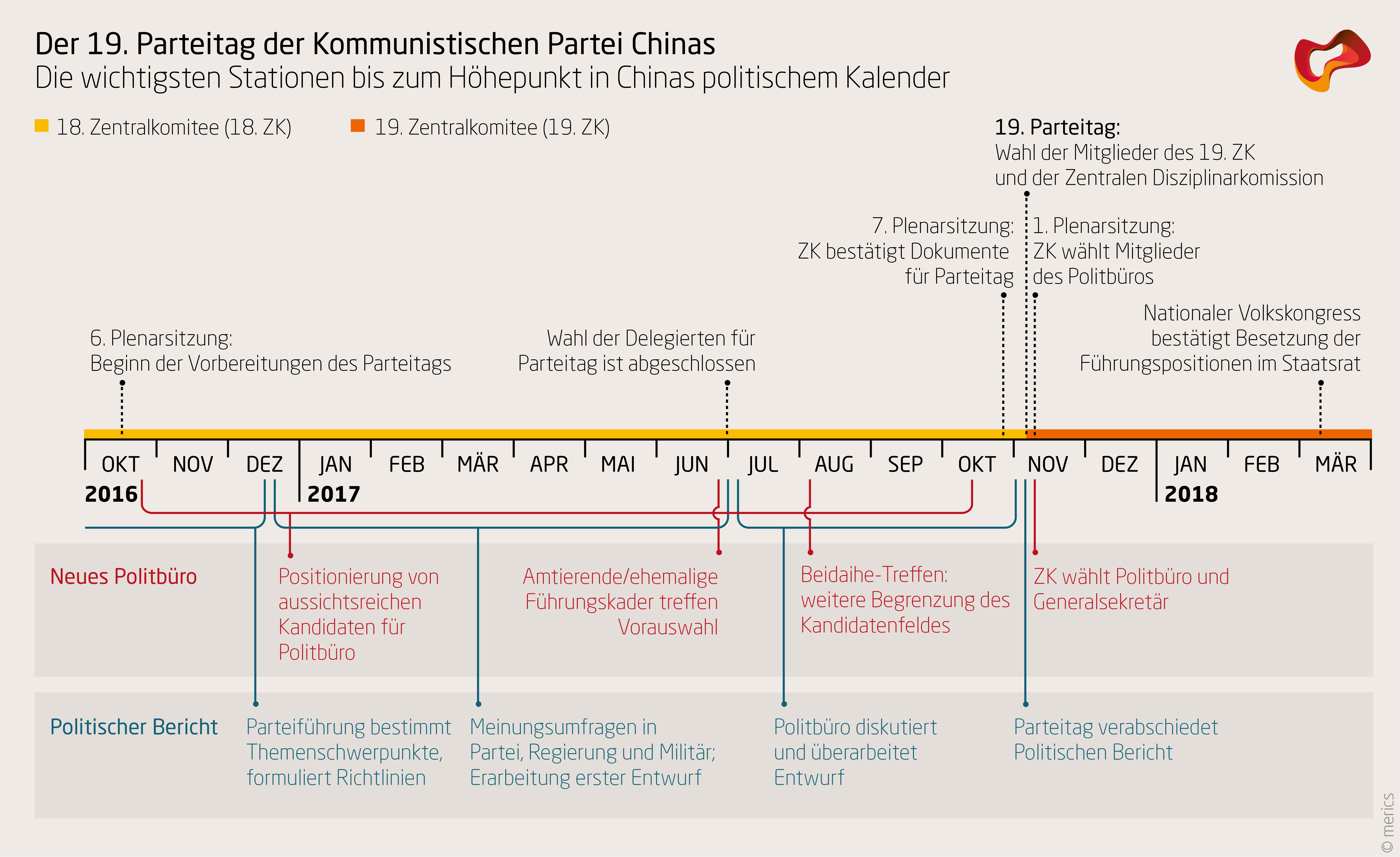 Der Politische Bericht des scheidenden Generalsekretärs Hu Jintao von 2012 definierte den Kampf gegen Korruption als überlebenswichtig für die Partei und gab damit den Anstoß für die von Xi bis heute mit Macht betriebene Anti-Korruptionskampagne. Es ist zu erwarten, dass der auf dem 19. Parteitag erwartete Politische Bericht die Prioritäten der obersten Führungsriege für die kommenden fünf Jahre vorzeichnet. Der Politische Bericht ist mehr als eine Rede des Generalsekretärs der KPC, er ist das Resultat eines Konsenses der Parteielite. Der Bericht wird in einem kollektiven Prozess erfasst, der sich nahezu über ein Jahr erstreckt und an dem Tausende von Kadern auf verschiedenen Regierungsebenen teilhaben: Darin sind Vertreter von Partei- und Regierungsorganen ebenso involviert wie Parteimitglieder in zivilen und militärischen Positionen. Der Gruppe, die den finalen Text verfasst, steht Xi Jinping persönlich vor.