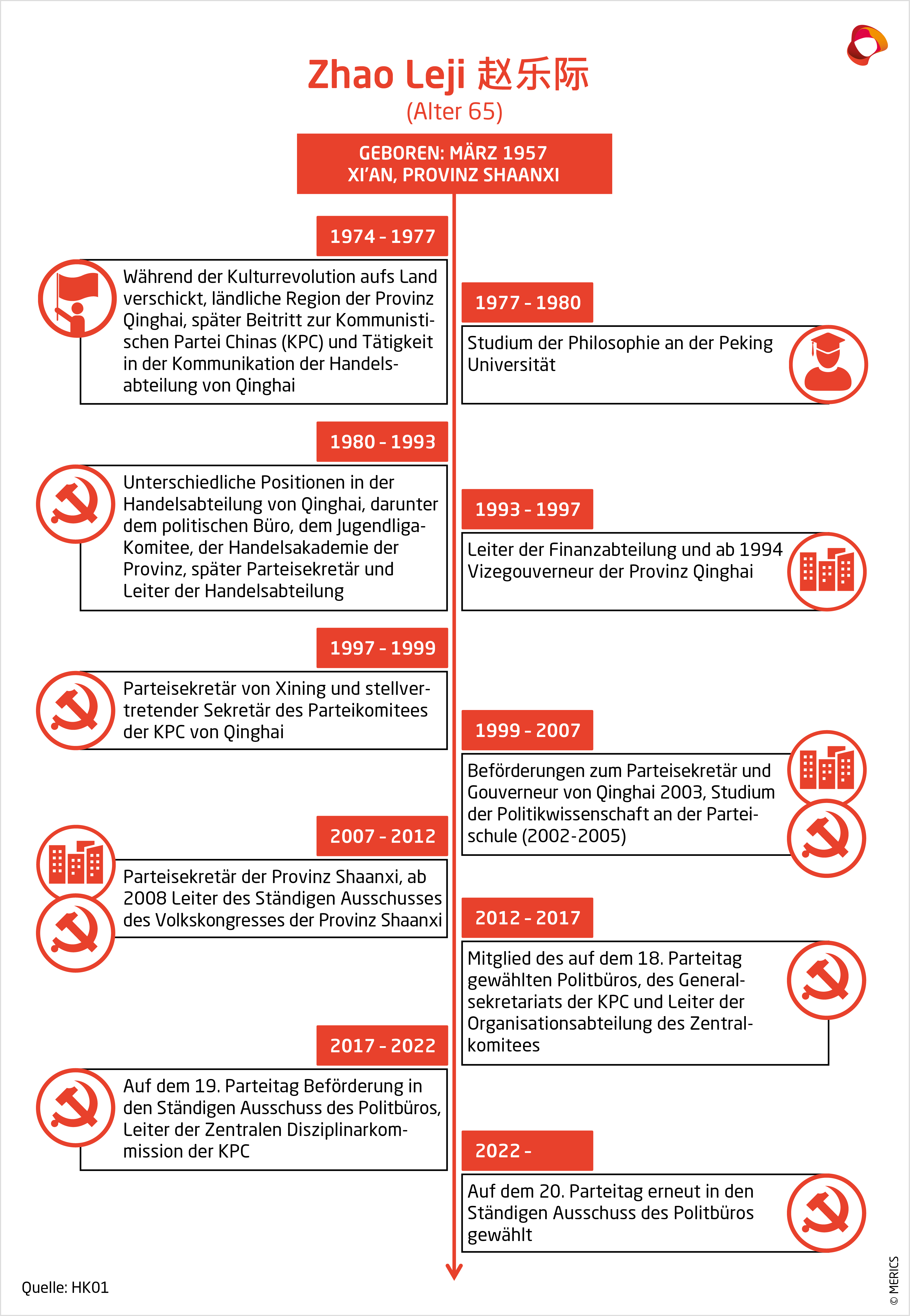 Zhao wird dem Ständigen Ausschuss des Nationalen Volkskongress (NVK), Chinas oberstem Gesetzgebungsorgan, vorstehen. In dieser Position wird ihm eine wichtige Rolle zukommen, wenn es darum geht, das von Xi verfolgte Prinzip „Herrschaft durch Recht” („rule by law“) umzusetzen, die Gesetzgebung zu überarbeiten und zu überholen und sicherzustellen, dass er den Vorstellungen der Parteiführung entspricht.