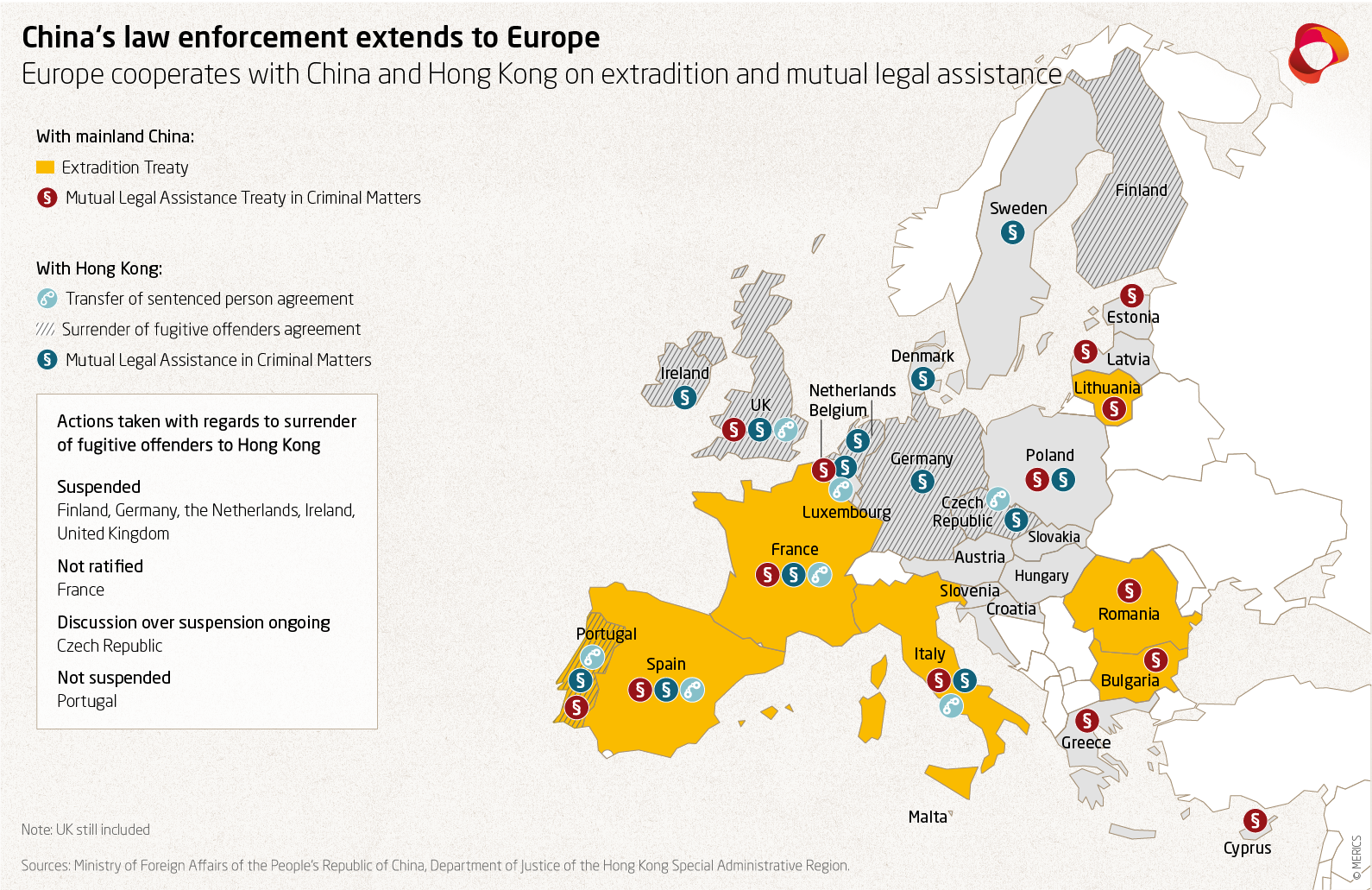 In July 2020, EU governments agreed to a package of measures in support of Hong Kong’s autonomy as a response to the National Security Law. These include stricter export controls for technology and equipment that could be used for repression, a revision of law enforcement agreements with the city and a review of visa schemes for Hong Kong citizens. In December, the EU finalized a new law on export controls, which will introduce greater due-diligence requirements for EU companies and governments. Most countries that have surrender of fugitive offenders agreements with the Hong Kong government suspended those treaties. However, extradition agreements between Beijing and several EU member states remain in place.