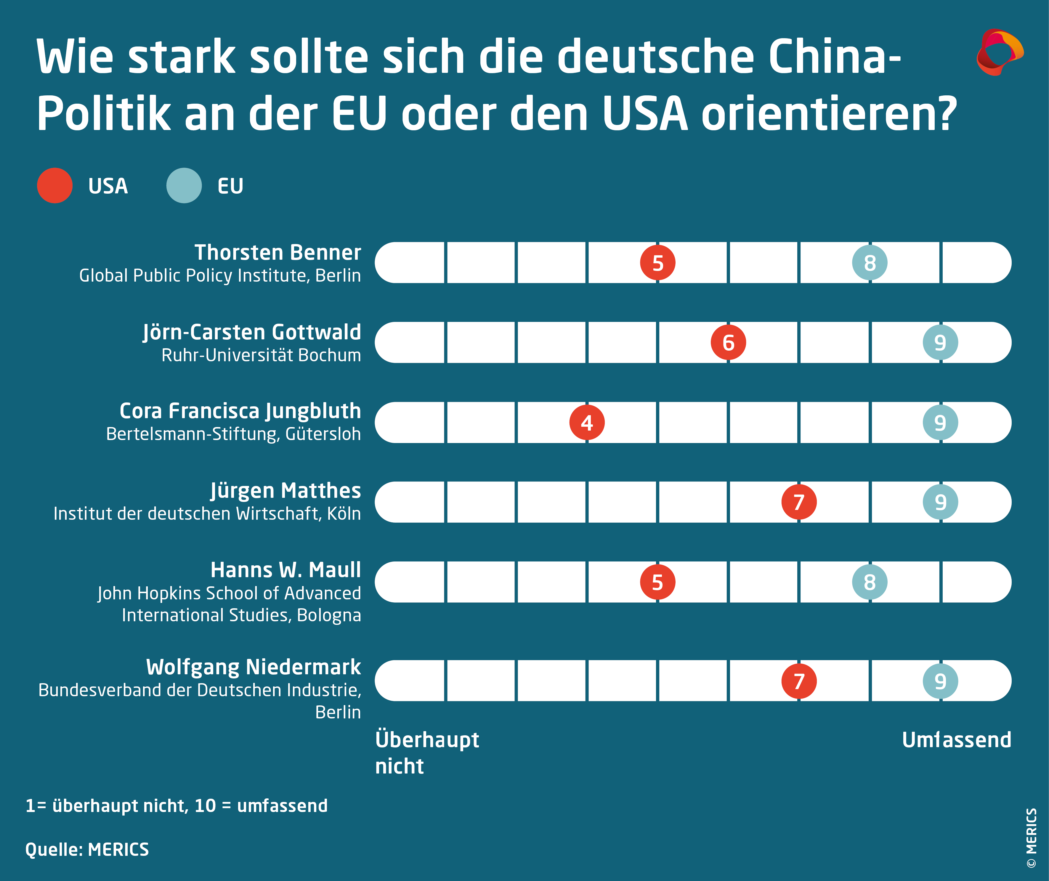 In der Chinapolitik wird auch viel davon abhängen, wie sich das transatlantische Verhältnis entwickelt. Die USA sind Deutschlands und Europas wichtigster Partner, insbesondere in sensiblen Bereichen wie Hochtechnologie und Verteidigung, und es ist in unserem Interesse, dass das auch so bleibt. Gleichzeitig steigt das Risiko, dass deutsche Unternehmen durch die Handelsspannungen zwischen den USA und China in die Schusslinie geraten. Hier muss die nächste Bundesregierung dafür eintreten, europäische Interessen zu schützen – die nicht immer deckungsgleich mit denen der USA sind - und gleichzeitig die transatlantische Partnerschaft zu stabilisieren.