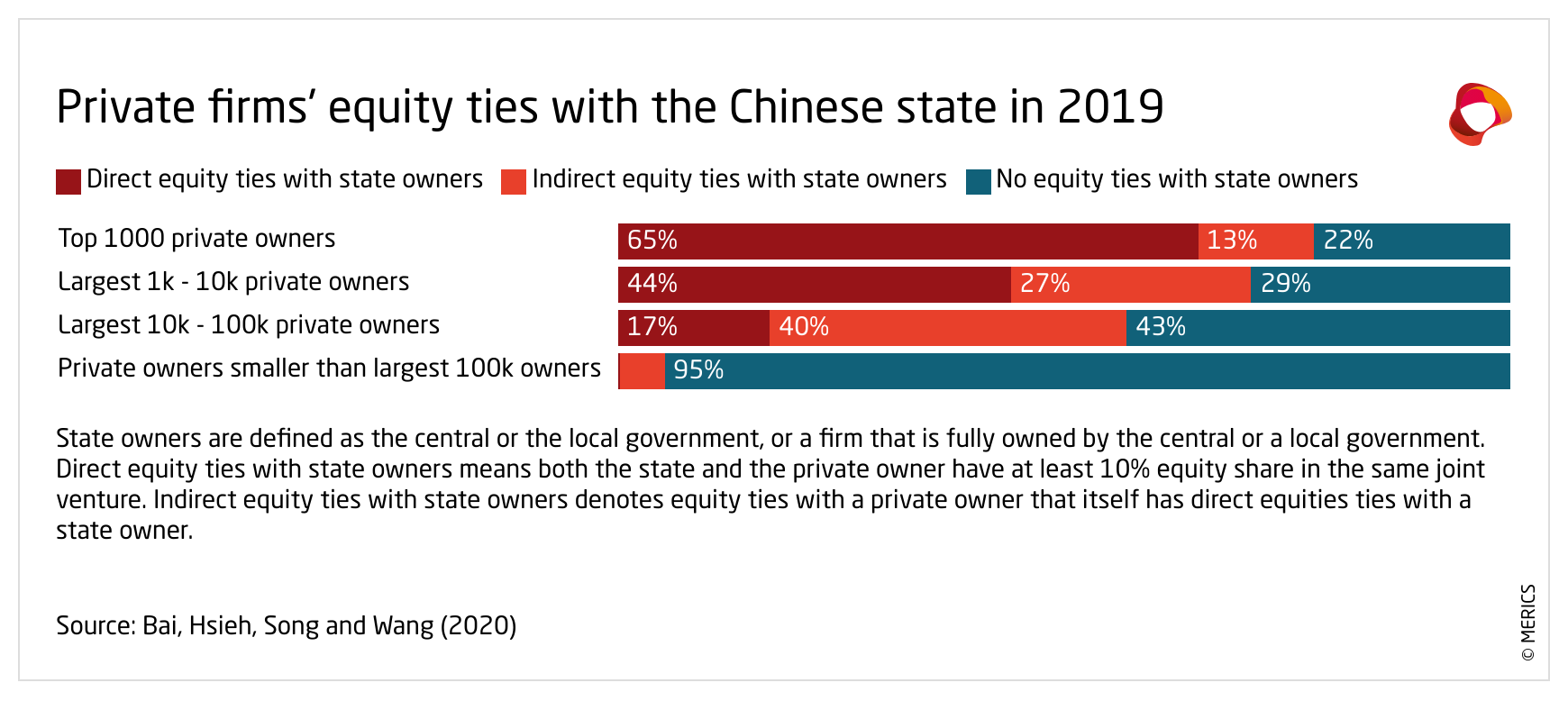 This means that the hunt for political favors will likely shift from market entry to the growth stage of a business’s lifecycle. The role of the party state in this stage has indeed expanded. The party has increased its influence over state-owned enterprises (SOEs). Party groups in SOEs now directly appoint senior managers and take part in strategic decision making. Today, more and more private firms are connected to these SOEs via their ownership structure, and state-connected private firms, in turn, invest more into other private firms, down to innovative small and medium-sized enterprises (SMEs).
