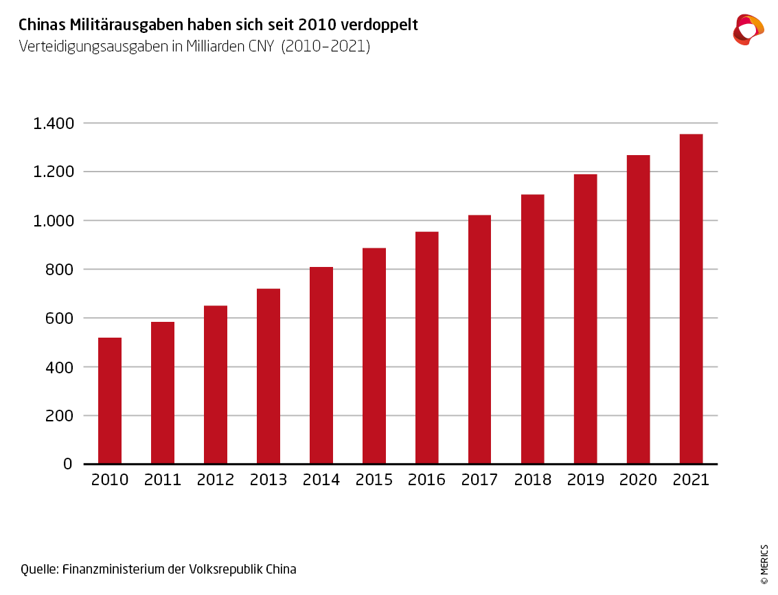 Um diesen Prozentsatz erhöht China seinen Militärhaushalt 2021, auf CNY 1,36 Billionen. MERICS-Expertin Helena Legarda: “Dieser Anstieg der Verteidigungsausgaben zeigt, dass die Modernisierung des Militärs für Beijing weiter Priorität hat – das gilt auch in Zeiten wirtschaftlicher Unsicherheit durch die Coronavirus-Pandemie. Nach den Worten der chinesischen Führung reagiert China damit auf ein ‚zunehmend komplexes internationales Umfeld‘”.