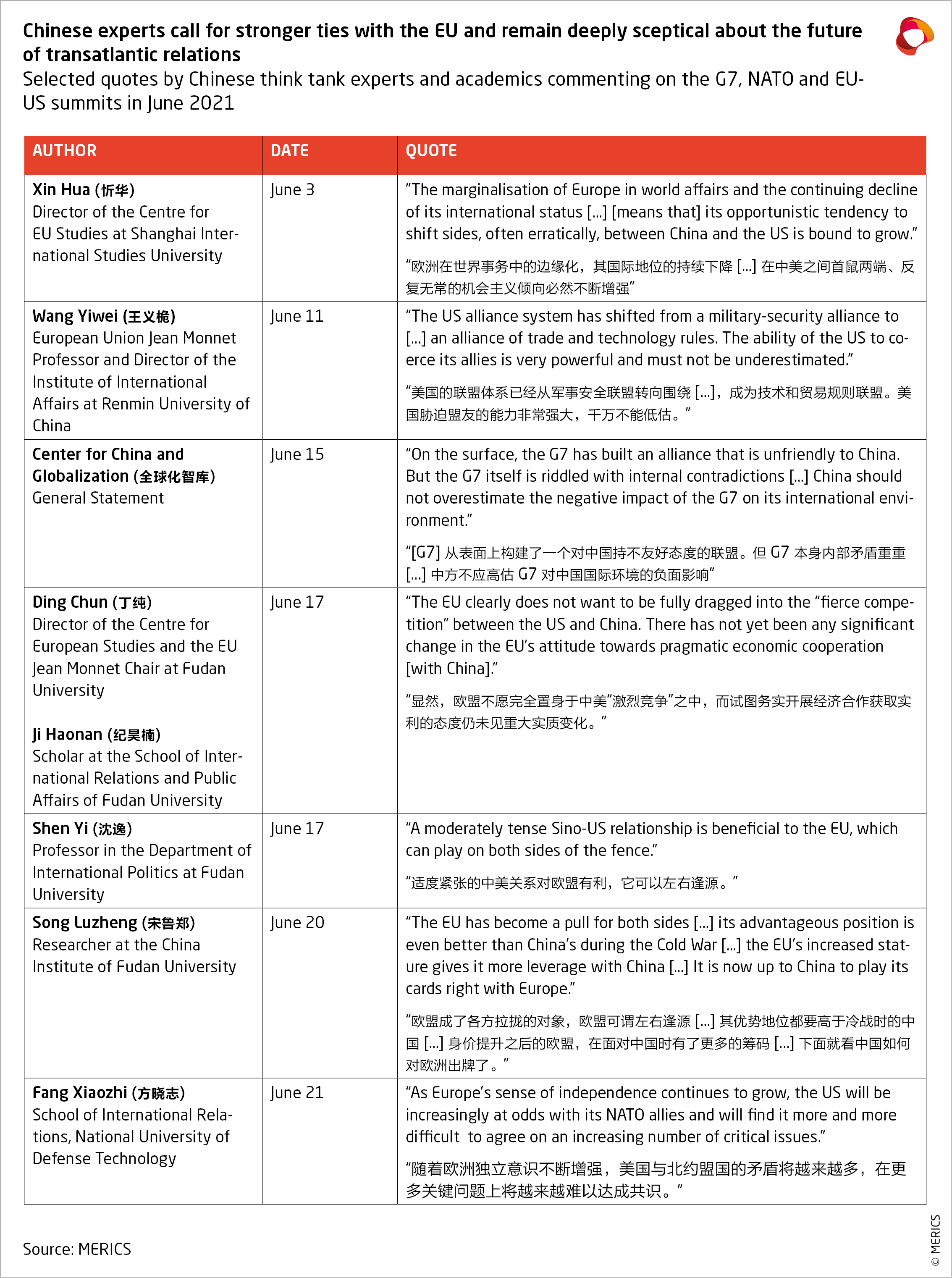 - MERICS: EU-US summit initiatives strengthen prospects for transatlantic China coordination