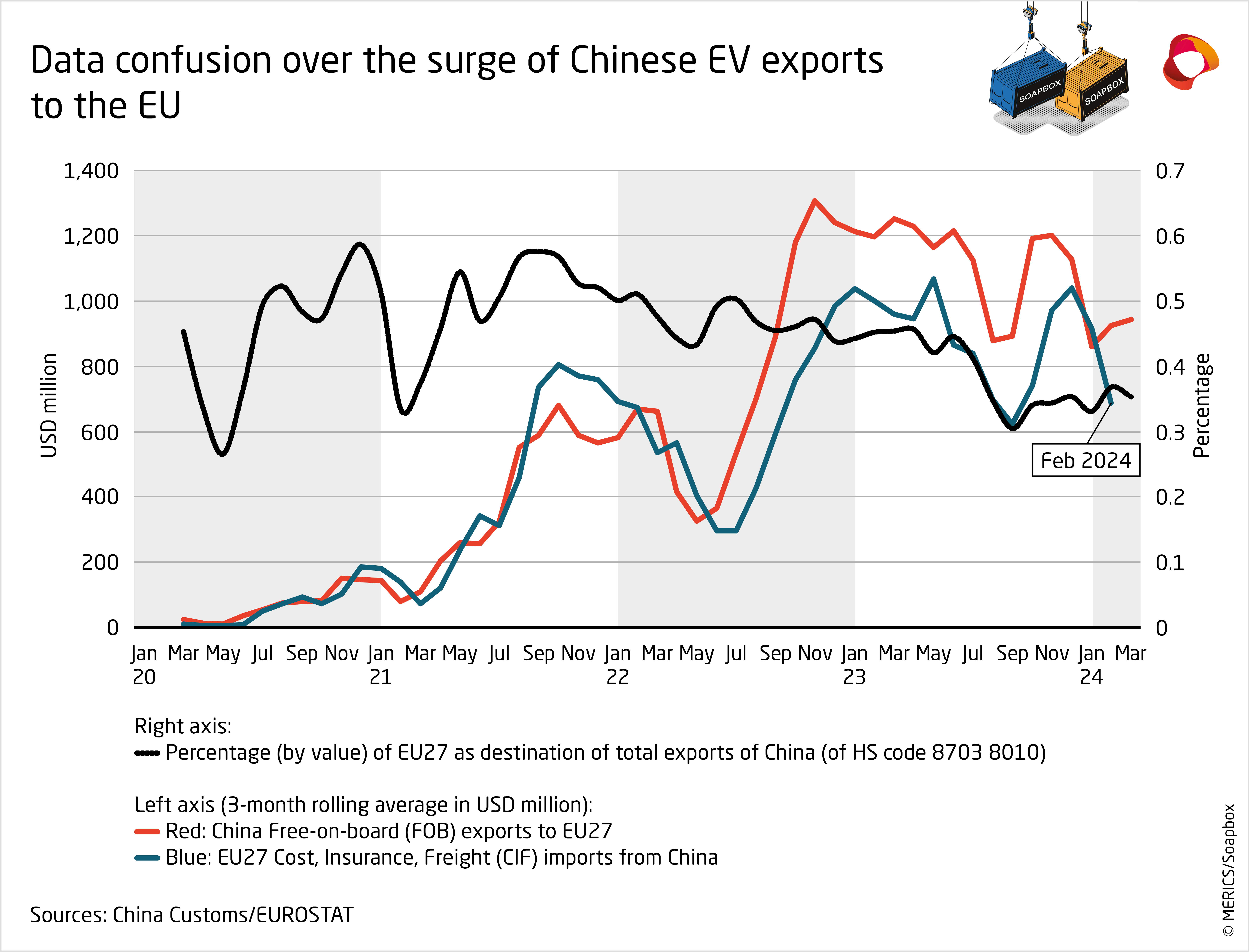 Europe-China 360° is proud to present a new regular section in our Brief, the “Soapbox – MERICS Data Highlight”, a visual discussion of topical issues in EU-China economic relations. We have teamed up with experienced trade specialist Rafael Jimenez Buendía, lecturer on International Trade at Taltech University in Talinn, Estonia, and co-founder of “Soapbox”, a free weekly newsletter solely focused on China Trade. Rafael and MERICS’ economic analyst Francois Chimits will comment on timely and relevant data regarding EU-China relations. We hope you enjoy our new supplement to this Brief.