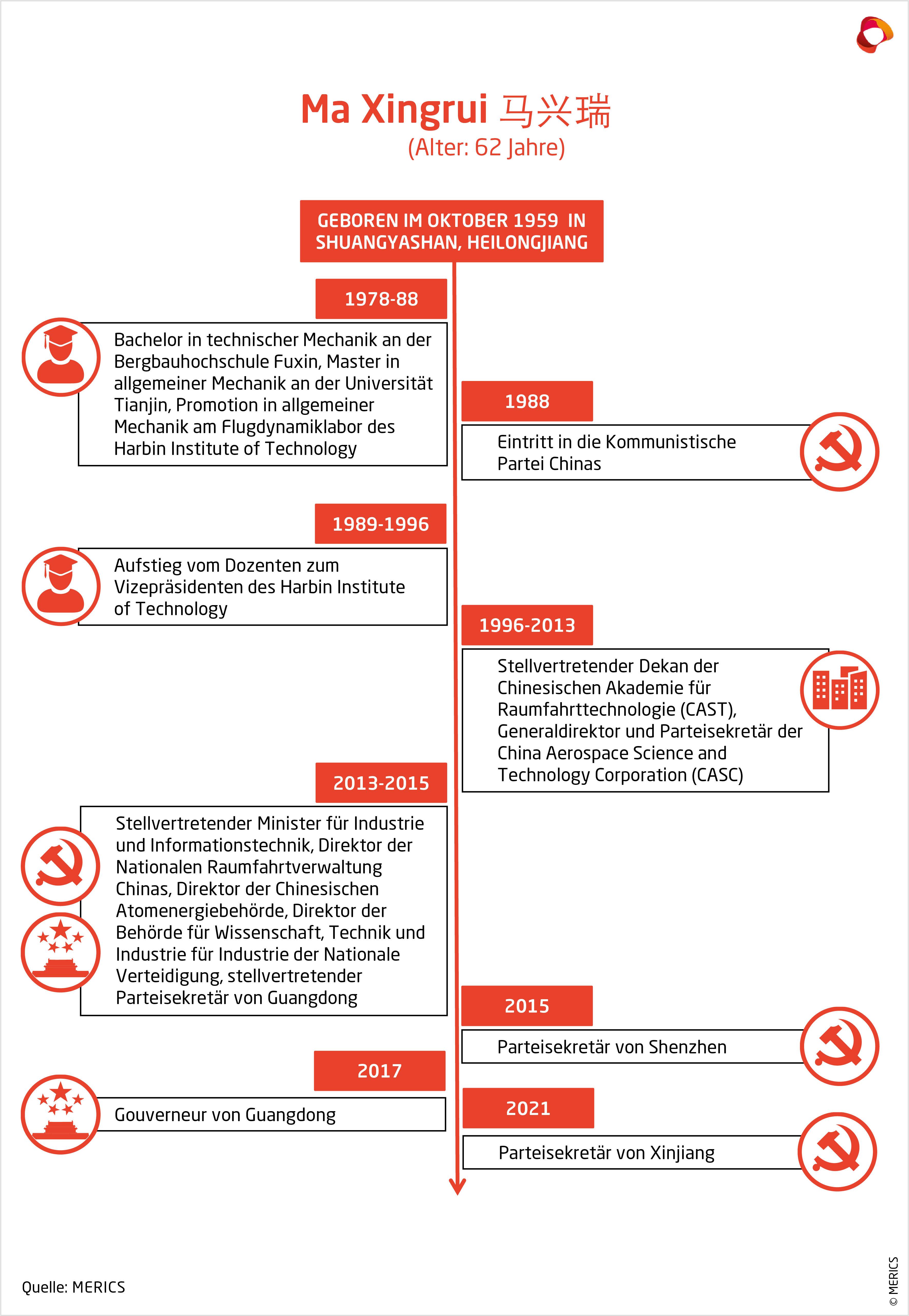Unter den Anwärtern auf einen Sitz im Politbüro auf dem Parteitag im Herbst befindet sich auch Ma Xingrui. Der 62-Jährige stammt aus der Provinz Heilongjiang im Nordosten Chinas und wurde im Dezember 2021 zum Parteisekretär der „Uigurischen Autonomen Region Xinjiang“ befördert – und damit in eine politisch äußerst heikle Position. Das kann auch als Ausdruck des Vertrauens gewertet werden, das Partei- und Staatschef Xi Jinping in Ma setzt. Da sein Vorgänger in Xinjiang, Chen Quanguo, seinen Sitz im Politbüro demnächst aus Altersgründen räumen muss, könnte Ma in das zweitwichtigste Entscheidungsgremium der Kommunistischen Partei Chinas (KPC) aufsteigen.