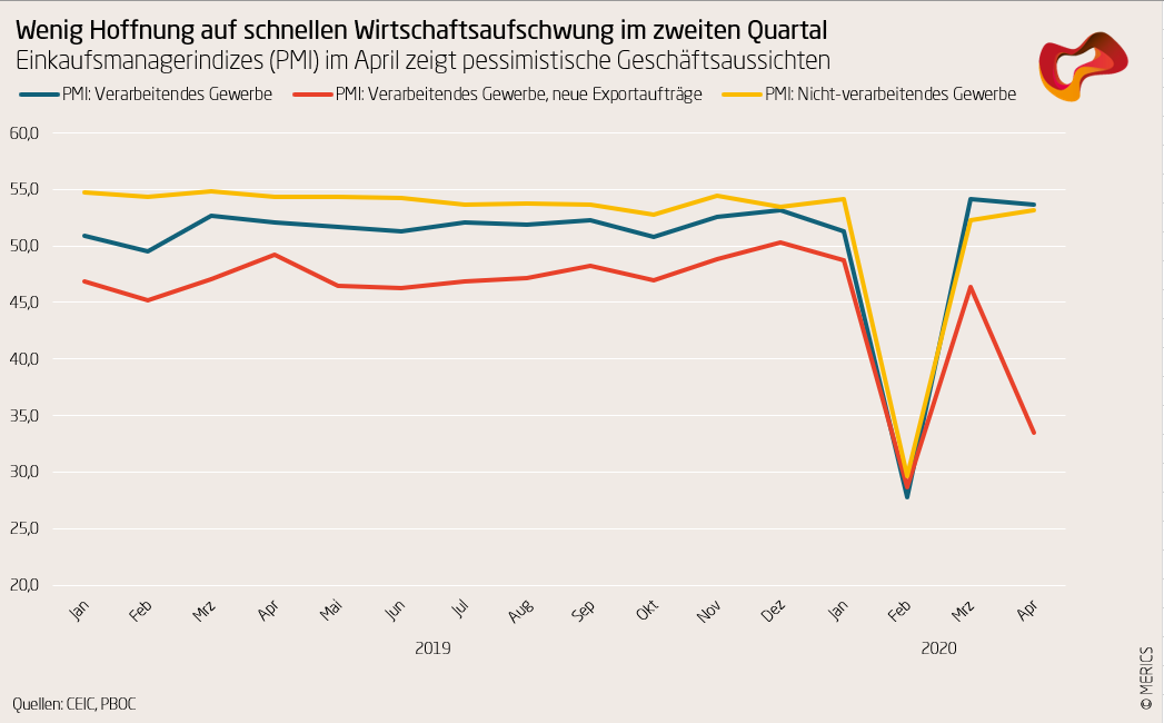 Die Einkaufsmanagerindizes (PMI) sind im April erneut gesunken, wobei der stärkste Rückgang auf die Exportaufträge des produzierenden Sektors zurückzuführen ist. Nach einer kurzen Phase des Aufschwungs im März fiel der Index beinahe wieder auf das Februarniveau zurück. Aufgrund der schwachen PMI-Zahlen scheint eine deutliche Erholung des Wirtschaftswachstums im zweiten Quartal sehr unwahrscheinlich.