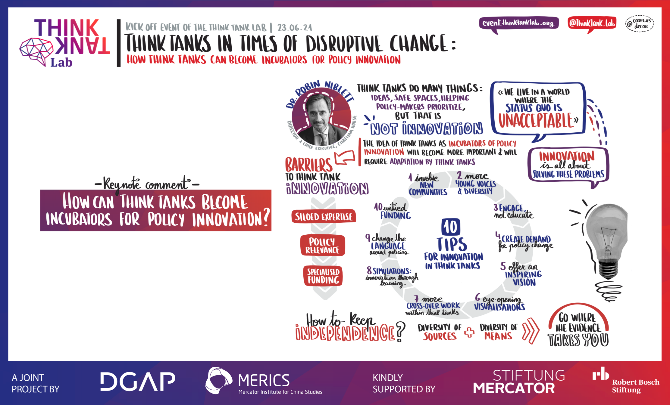 Think tanks have always been sources of information and analysis. But faced with today’s challenges, this role alone is insufficient. Think tanks need to evolve and become incubators for policy innovation. What stands in the way of policy innovation? And how can think tanks overcome these obstacles? These were some of the questions we asked Dr. Robin Niblett, Director of Chatham House. In this article, we set out his 10-point plan on how think tanks can become policy incubators.