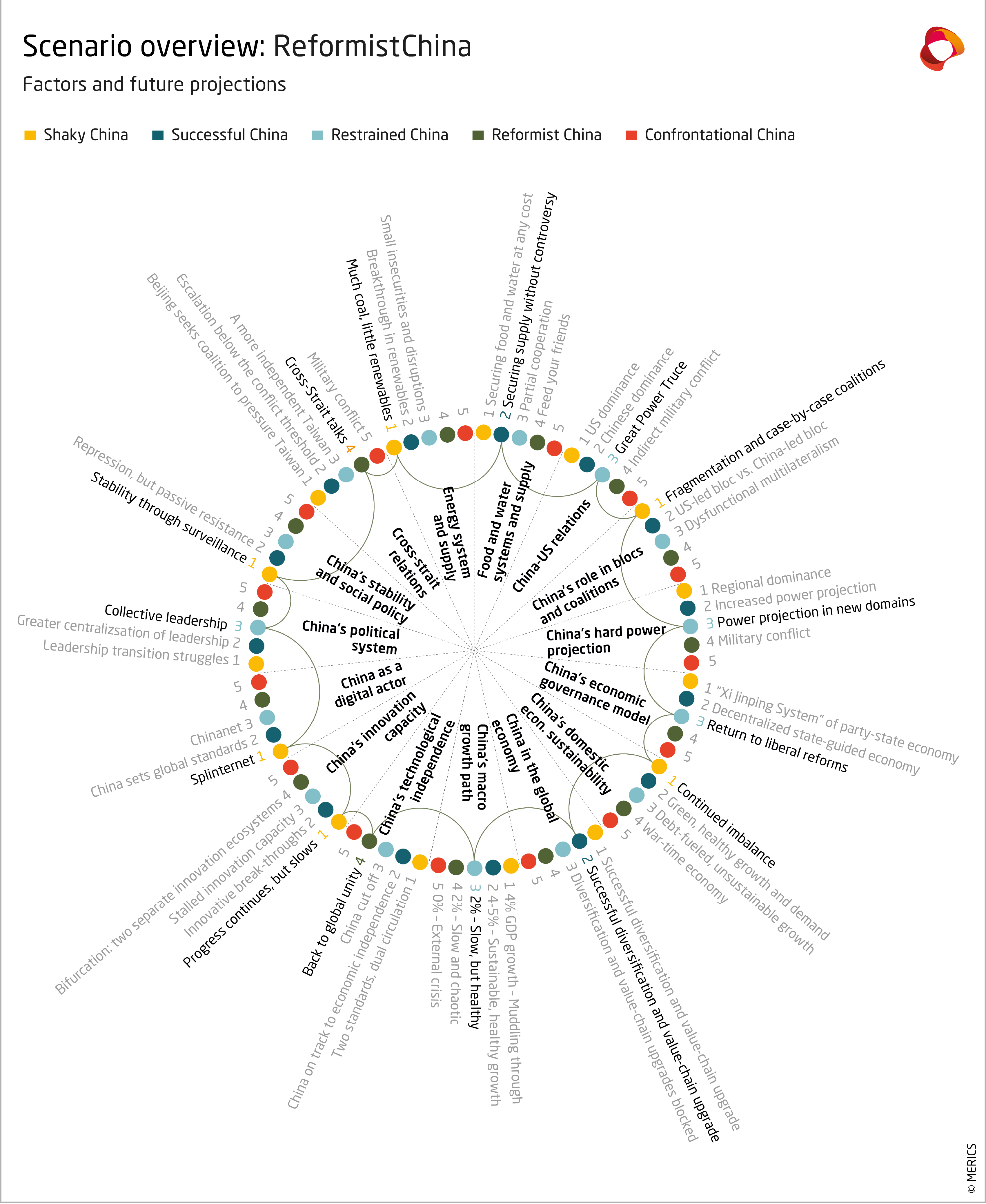 An internal crisis in China that calls for an urgent and fundamental course correction is a necessary precondition for a “Reformist China” scenario. It is relatively easy to imagine how such a crisis might arise. Rising socioeconomic stress means it is far from certain how effective Xi’s policy toolbox - focused on centralization and control - will be. Experiences from China’s handling of the Covid-19 pandemic show what powerful repressive mechanisms the party has put in place to prevent public discontent or internal rifts becoming visible. Alternatively, a situation where Xi exits the political stage (for whatever reason) could also trigger dynamics that create room for a course correction.