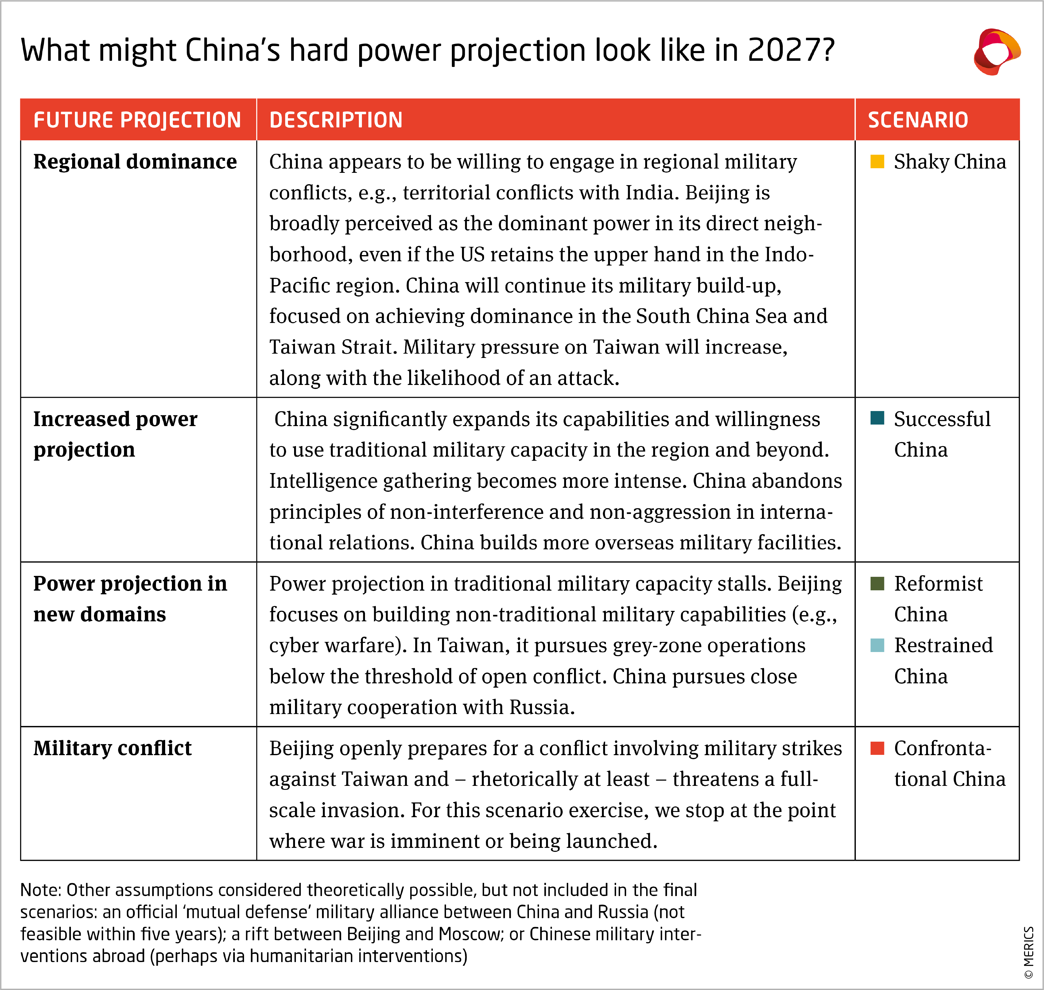 Gaining control over Taiwan and achieving military dominance in its neighborhood are the main objectives behind China’s massive military build-up. These goals require a military that can fight and win wars. China is seeking to project power to defend its interests beyond its neighborhood, e.g., by establishing military bases overseas, and increasing military-to-military cooperation with other countries. It is using platforms such as the Shanghai Cooperation Organization (SCO) or its Global Security Initiative to establish a security framework under Beijing‘s leadership and export its views on global security architecture. Russia ‘s war in Ukraine and the West’s response (sanctions, weapons supply to Ukraine) might further accelerate China‘s efforts to expand its hard power, especially its nuclear capabilities.