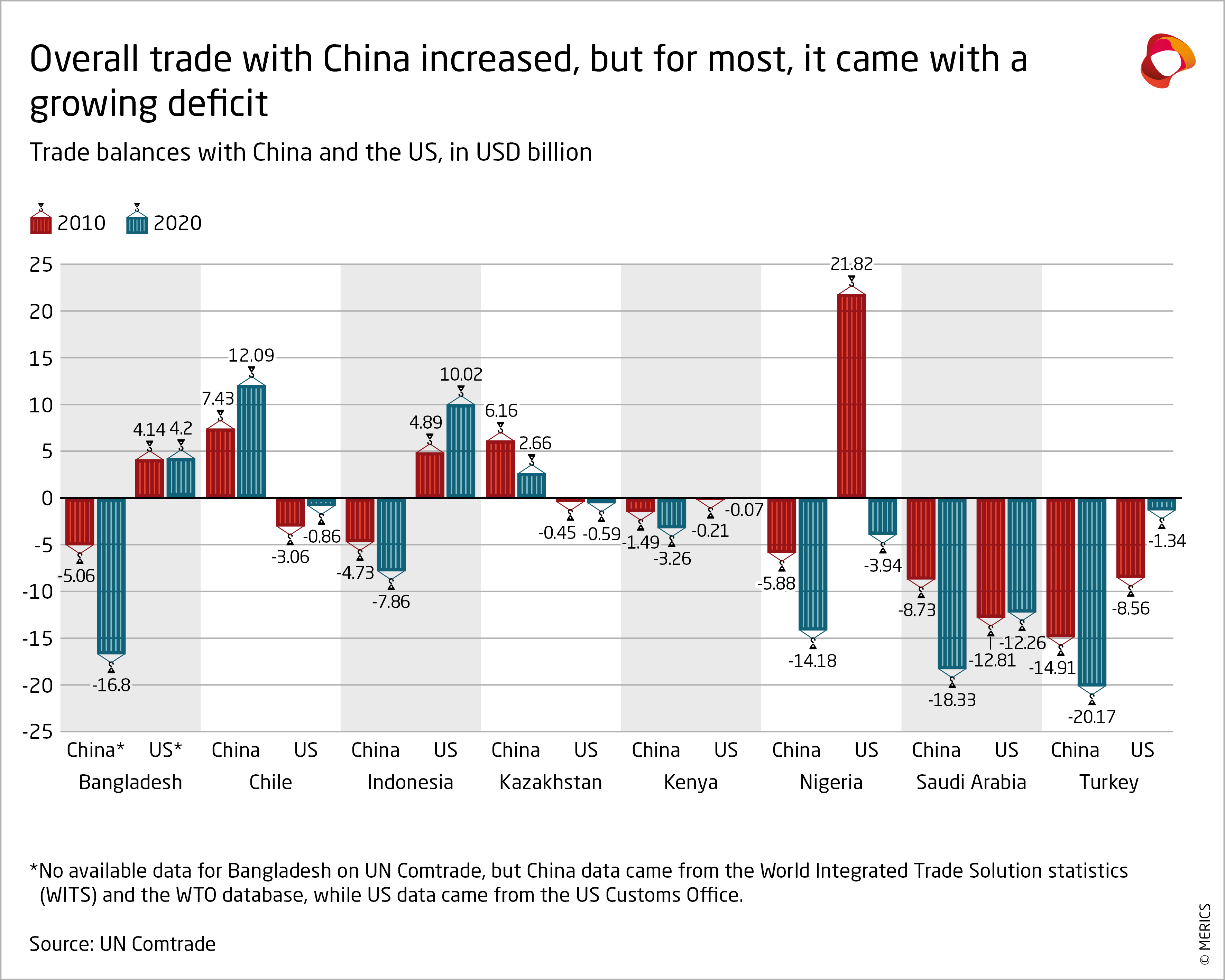 • Contributors to this study reported on perceptions in Bangladesh, Chile, Indonesia, Kazakhstan, Kenya, Nigeria, Saudi Arabia, and Turkey. All said their countries’ ties with China have strengthened over the last decade.