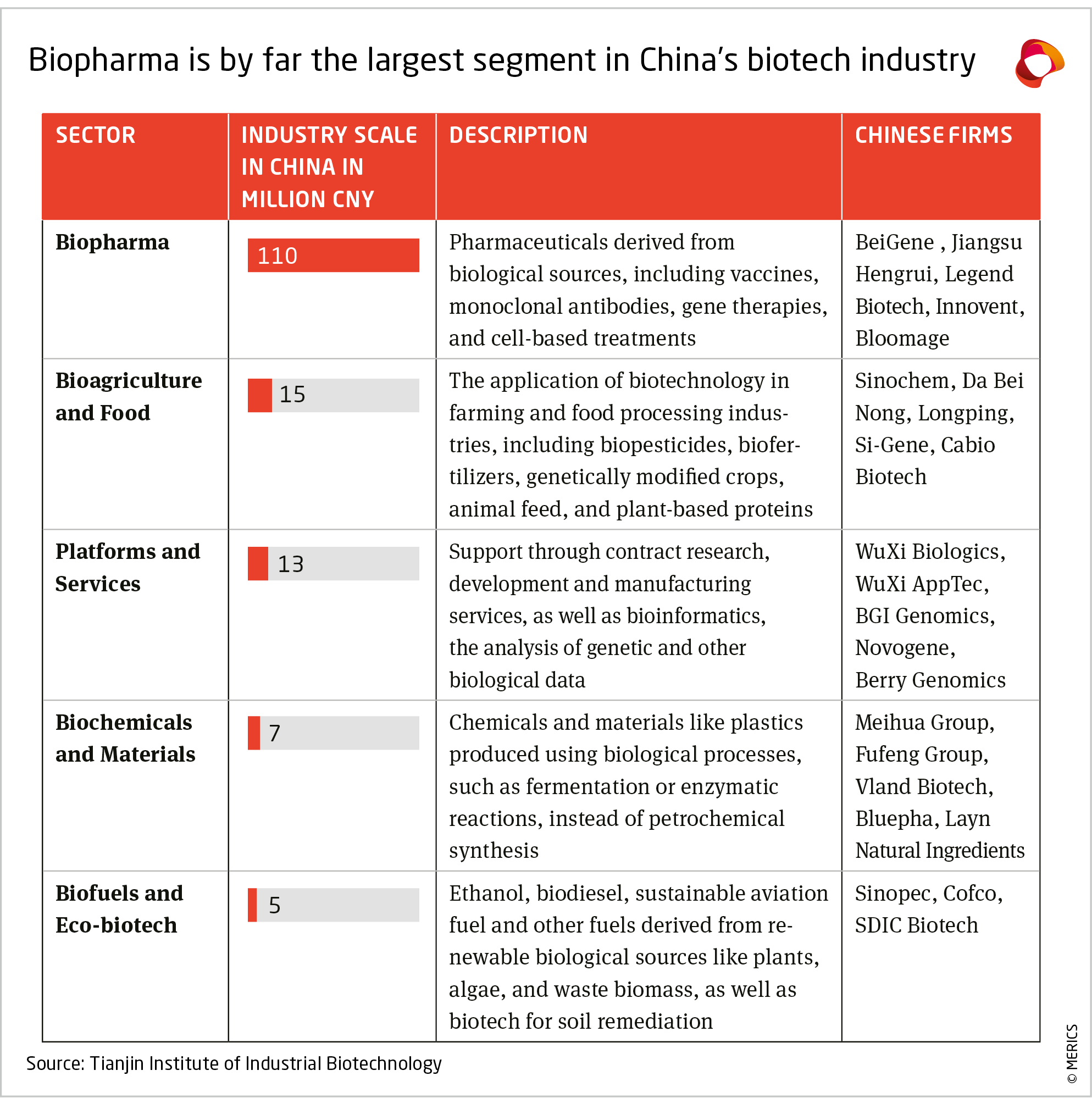 - European and American pharma firms have been investing heavily in Chinese biotech companies. This illustrates the growing innovativeness of China’s biotech sector, which benefits from a range of government incentives.