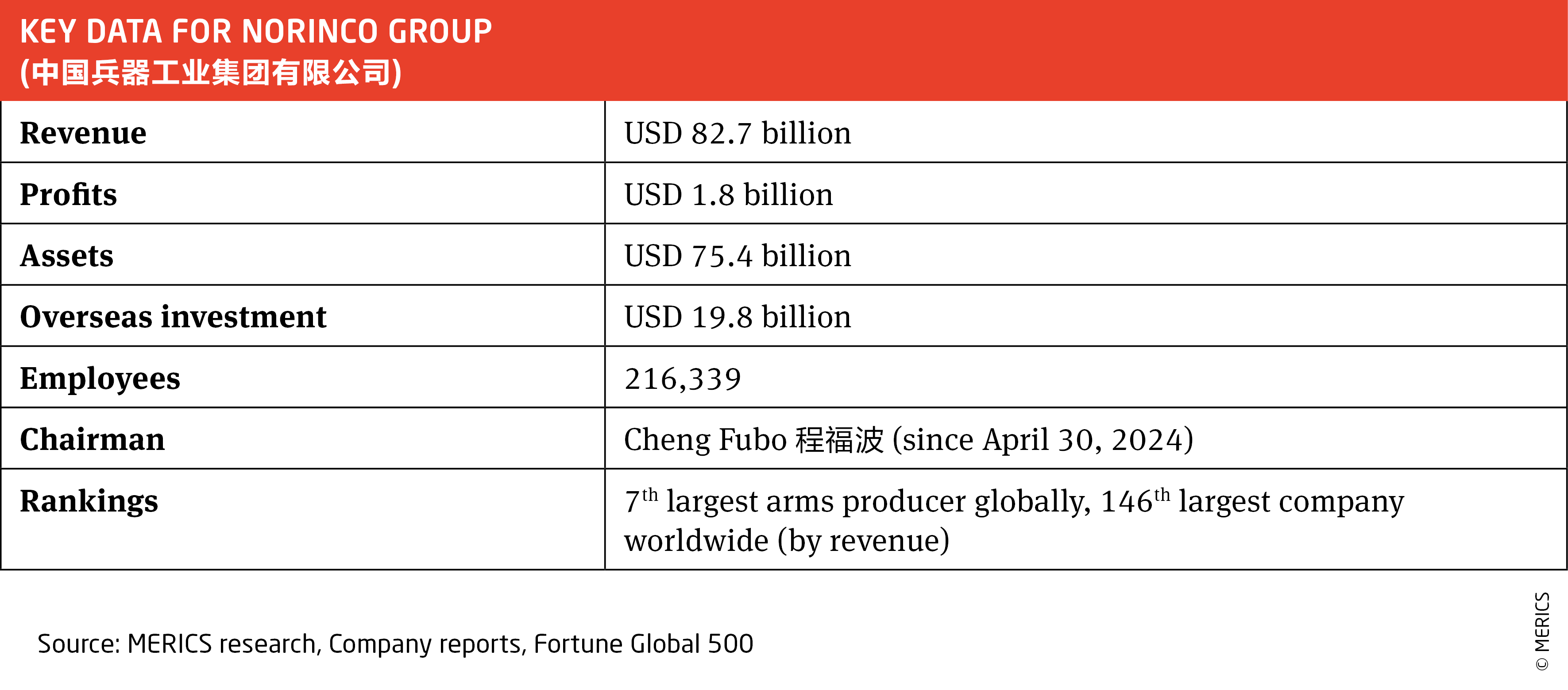 - Norinco Group (the Northern Industries Group), which leads the production of land equipment and munitions and its cousin the Southern Industries Group