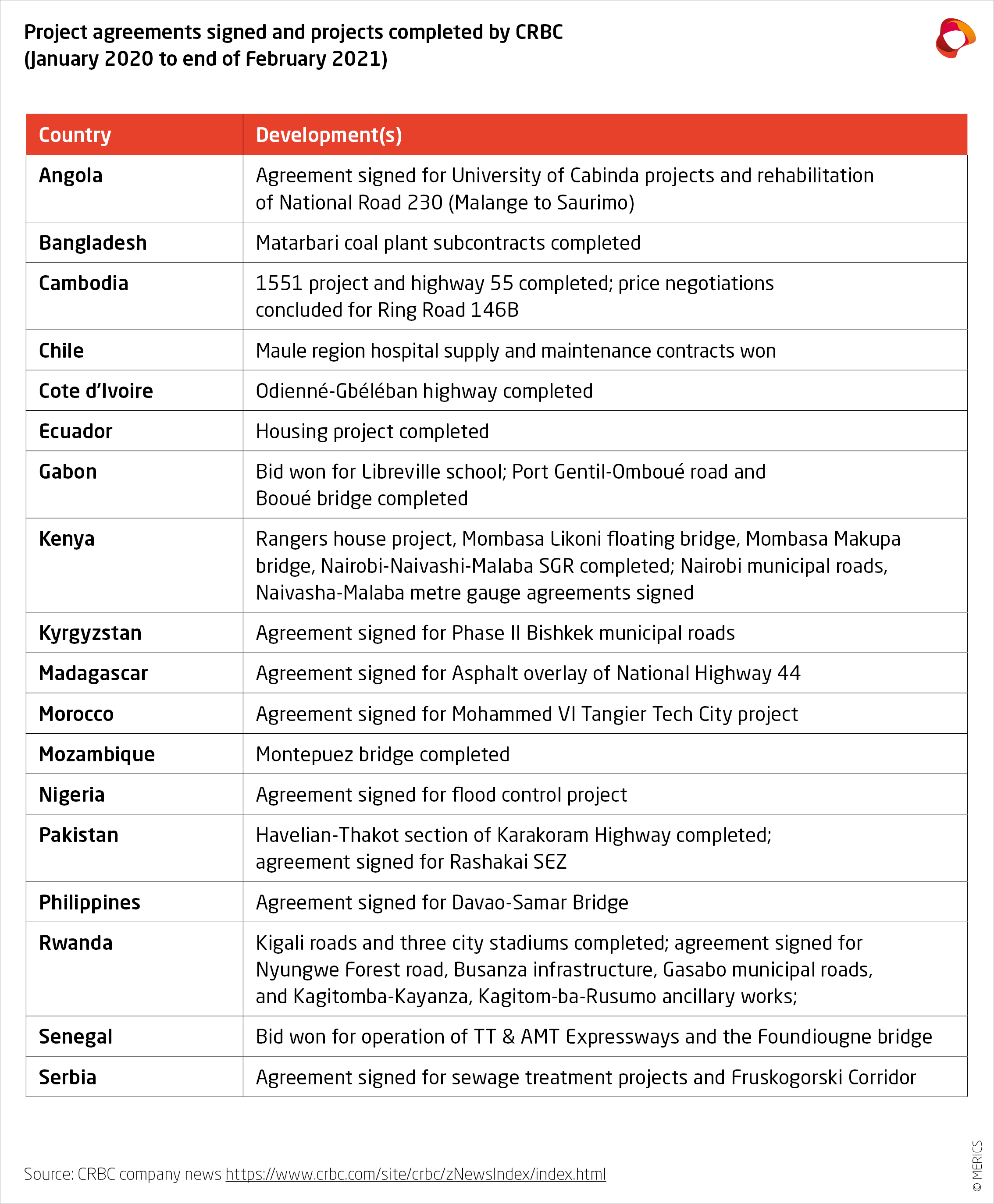 As demonstrated by the following table, CRBC still has a strong presence in its first established markets – like Kenya and Rwanda – but it now has a truly global presence, with offices in over 60 countries, including in Europe.