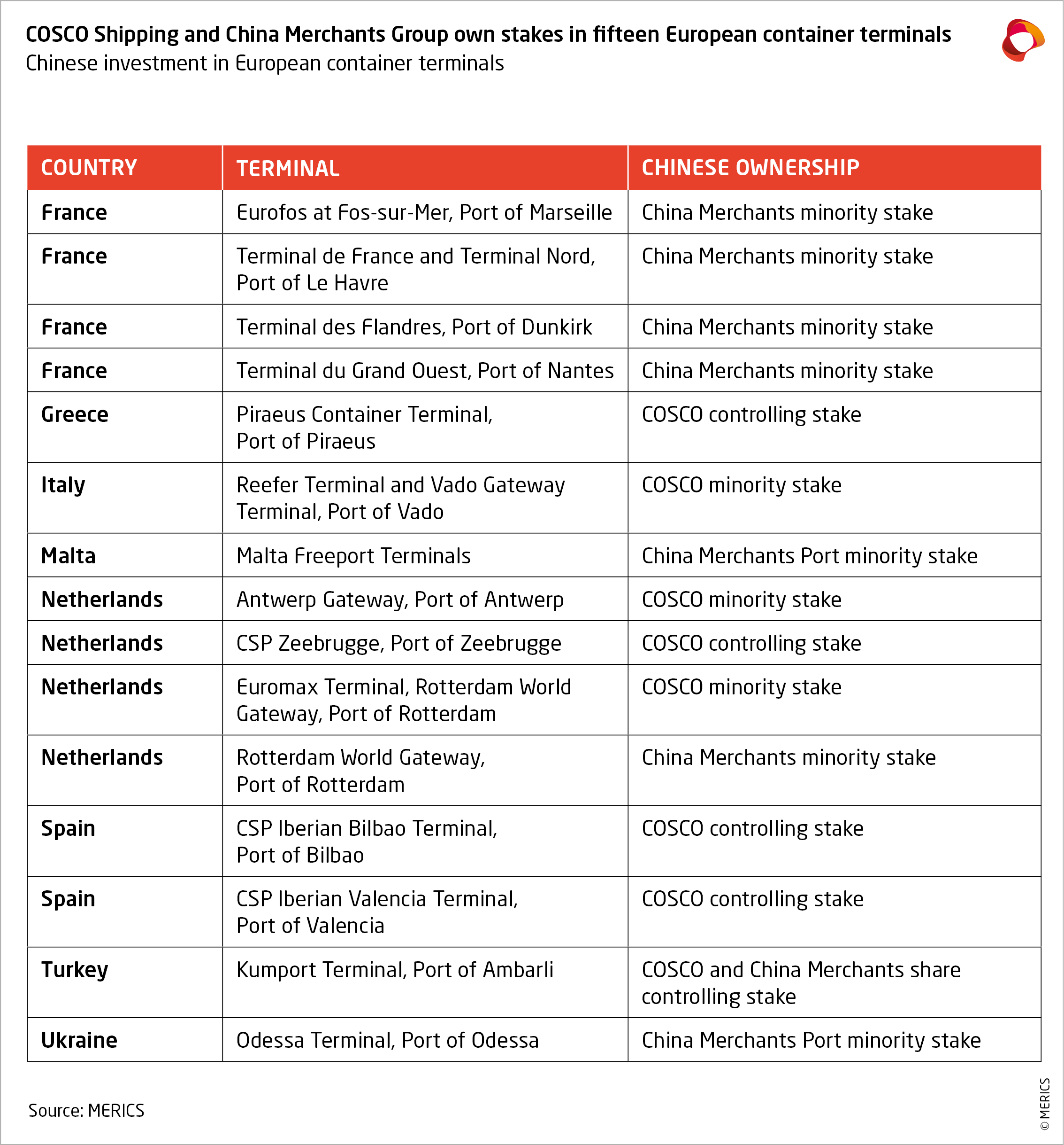 Piraeus is the best-known Chinese-run port in Europe but several other European ports have received major Chinese investment, mostly from one of two Chinese state giants – COSCO Shipping or China Merchants Group.