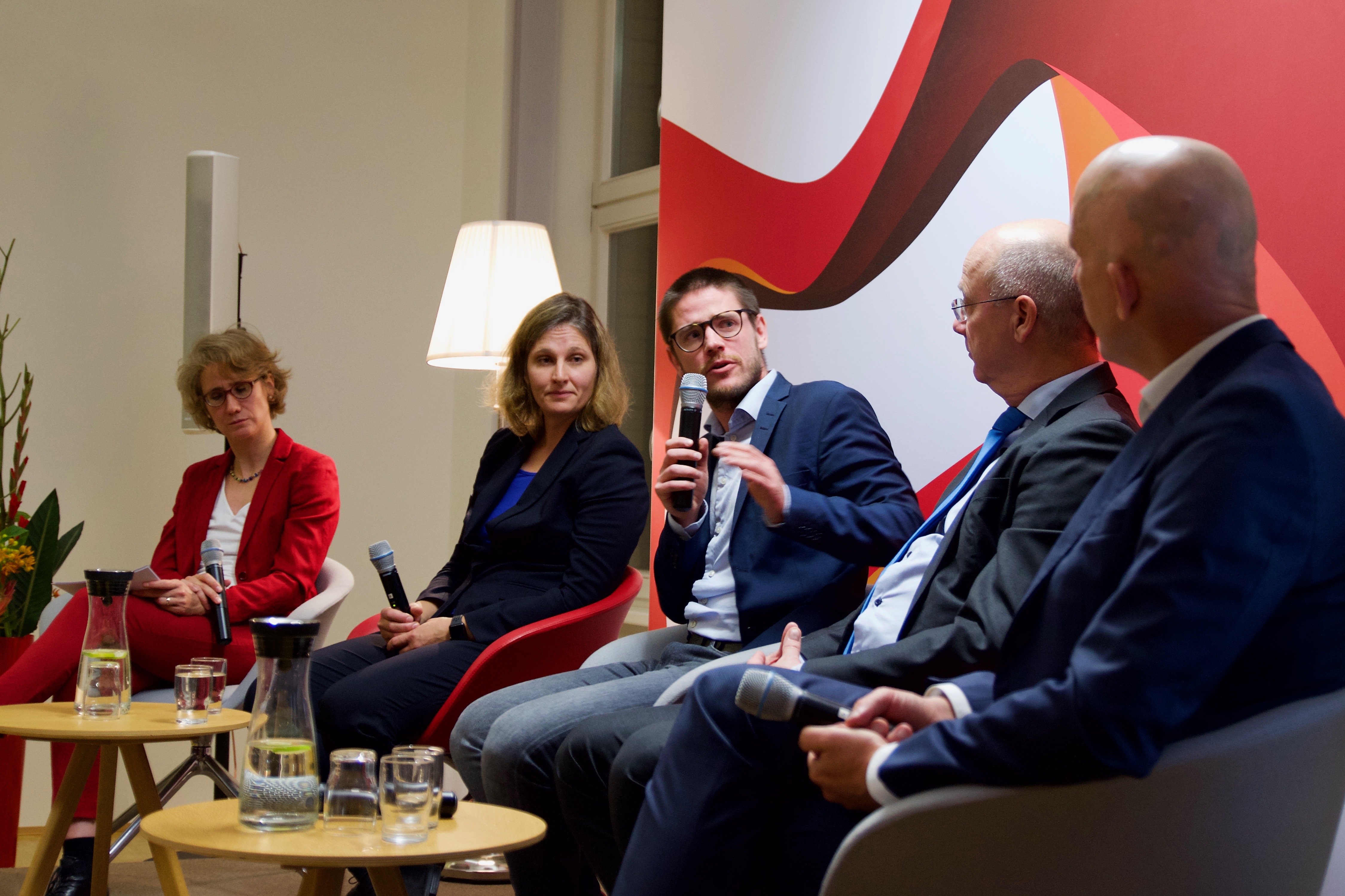 Kristin Shi-Kupfer, Leiterin des Forschungsbereichs Politik, Gesellschaft und Medien am MERICS, moderierte die Debatte mit Sarah Eaton (Professorin am Institute for Asian and African Studies an der Humboldt Universität Berlin) Christian Göbel (Professor für Moderne Sinologie an der Universität Wien), Andreas Møller Mulvad (Assistant Professor an der Copenhagen Business School) und MERICS Direktor Frank N. Pieke.