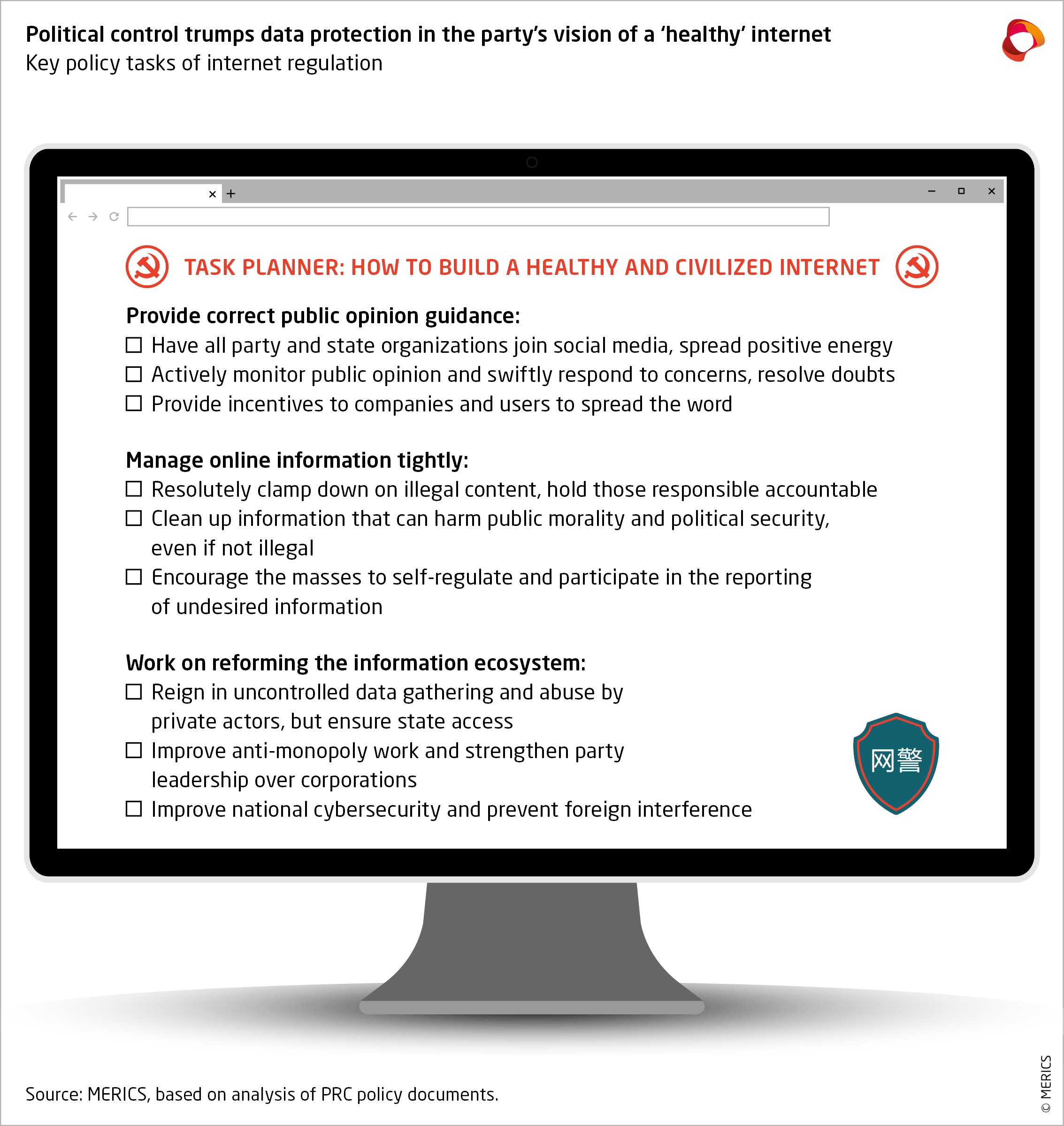 The CCP is particularly concerned about the viral dissemination of information critical of the government and spill-over effects that might result in protests or political movements offline.15 A core component of media policy under Xi has therefore been building a “healthy internet” in which negative information is contained and “positive energy” is spread by state actors. In recent years, a lengthy series of laws and regulations for content control in the digital space have been passed.