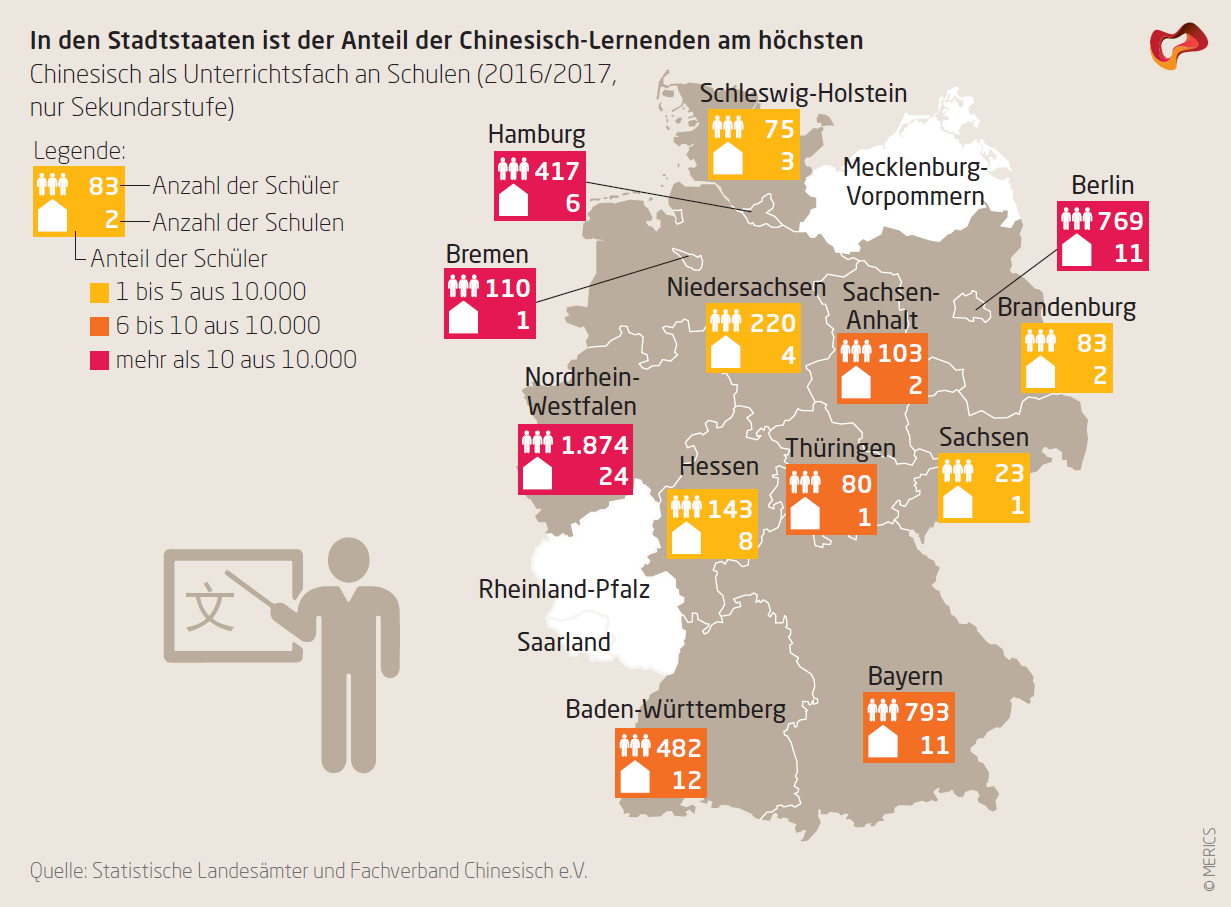 - Die von der chinesischen Regierung finanzierten Konfuzius-Klassenzimmer können trotz der offensichtlichen Eigeninteressen Pekings, was die Vermittlung eines positiven China-Bildes angeht, ein sinnvolles Ergänzungsangebot sein. Der schulische Chinesisch-Unterricht muss jedoch grundsätzlich in deutscher staatlicher Zuständigkeit bleiben.