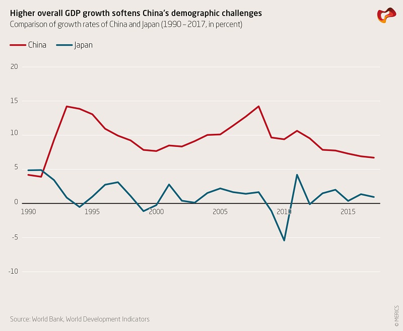 China experiencing demographic transition as a developing country in turn means the economic impact of population ageing is likely to be different to the Japanese case.