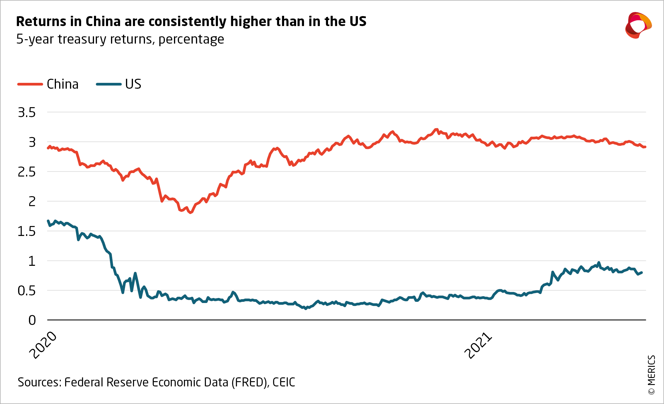 Investors have rushed to make use of these new opportunities to benefit from the better performance of the Chinese market. China’s faster economic growth has led to consistently higher financial-market returns than Western markets over the past years. Take government bonds: a Chinese 5-year treasury currently produces an annual financial return about two percentage points higher than the equivalent US government bond and its risk rating is quite similar – Standard & Poor’s rates the Chinese bond a solid A+ and the US paper AA+.