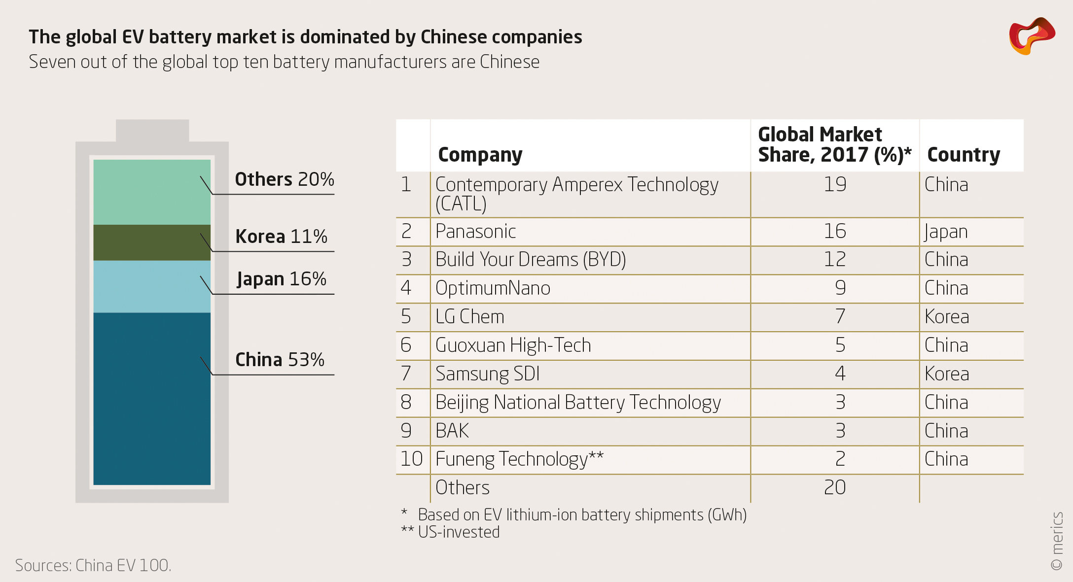 To cement their supremacy, Chinese battery manufacturers also count on fellow Chinese companies’ support. Last year, for instance, CATL formed two joint ventures with automobile company SAIC Motor. It also entertains strategic relations with other firms such as Dongfeng Motor. The Optimum Nano Innovation Alliance represents another type of initiative that ties together key domestic (read “Chinese”) players across the value chain of EV battery production. Acquisitions of foreign companies and inbound transfer of technology to build up a strong Chinese industry have become relatively scarce. The recent business activities of China’s top five battery manufacturers conform to an expansionist strategy of self-confident actors that started out to conquer the world battery markets.