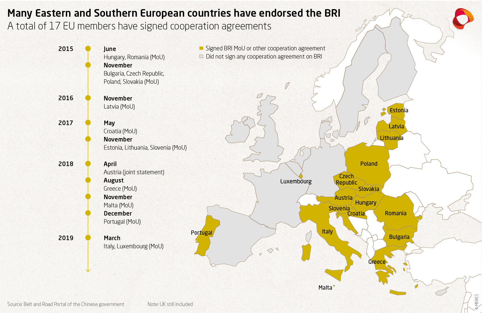 Between 2015 and 2019, many European governments signed onto the Belt and Road Initiative (BRI) in hopes of expanding trade and investment ties with China. All members of the 17+1 framework in eastern Europe are part of the BRI. In 2019, Italy became the first G7 state as well as EU and NATO founder to join the Initiative. However, while European countries remain interested in economic cooperation with China, the overall attitude towards the BRI has grown more skeptical throughout the years. Critics say it lacks transparency and does not meet free trade, environmental and other standards. Economic opportunities have largely failed to materialize, and in some countries the trade imbalance in bilateral relations has further widened in China’s favor after the signing of BRI MoUs.