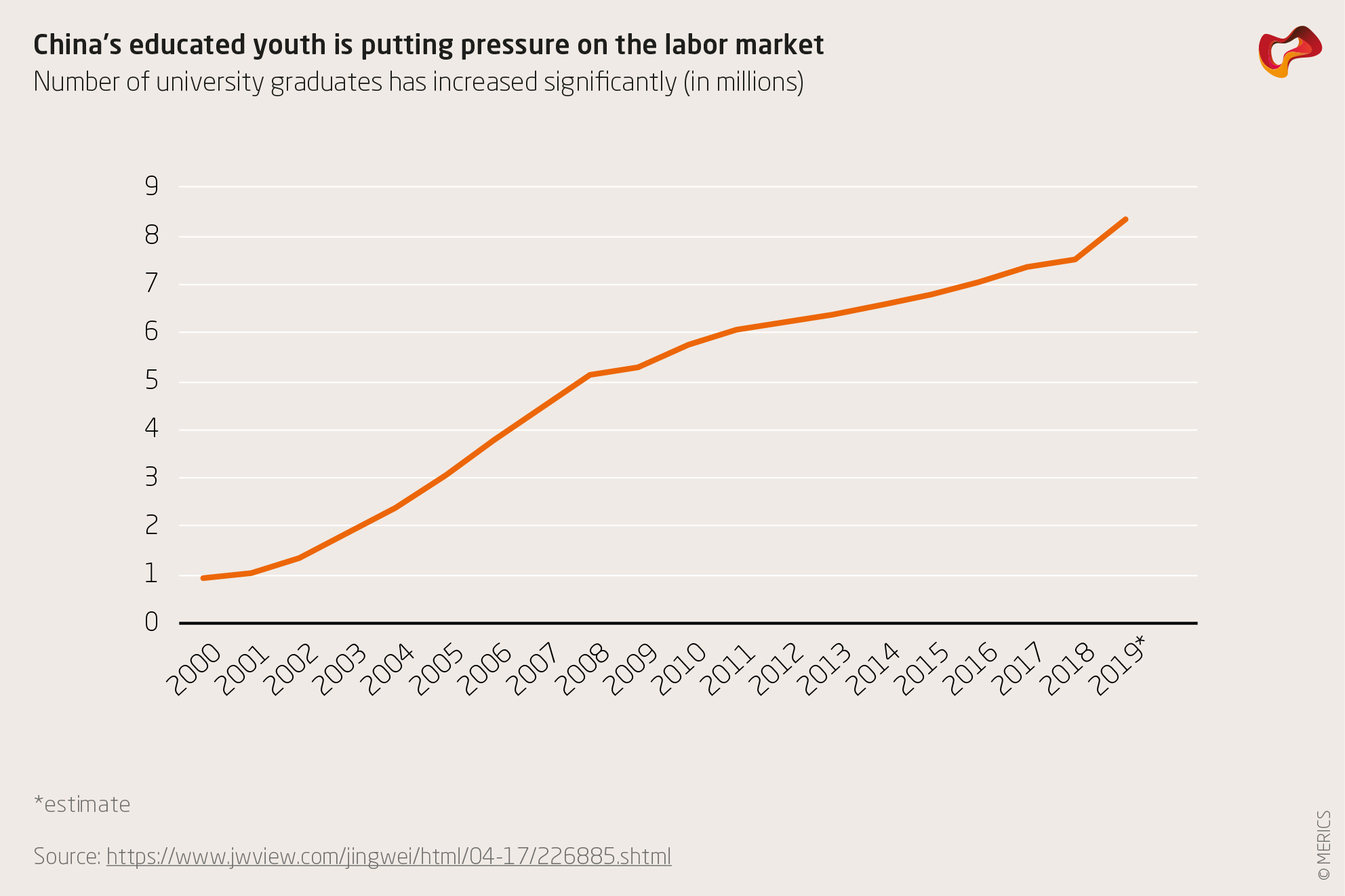Given this rosy picture, why then did Beijing create a new leading small group (LSG) for exactly this topic? LSGs are normally only established for major tasks that are particularly challenging. Yet in May, a State Council Employment Work Leading Group was set up, headed by Vice-Premier Hu Chunhua. Its 25 members are the vice leaders of nearly every ministry and institution. Its task: “researching as well as solving the major problem of employment.”