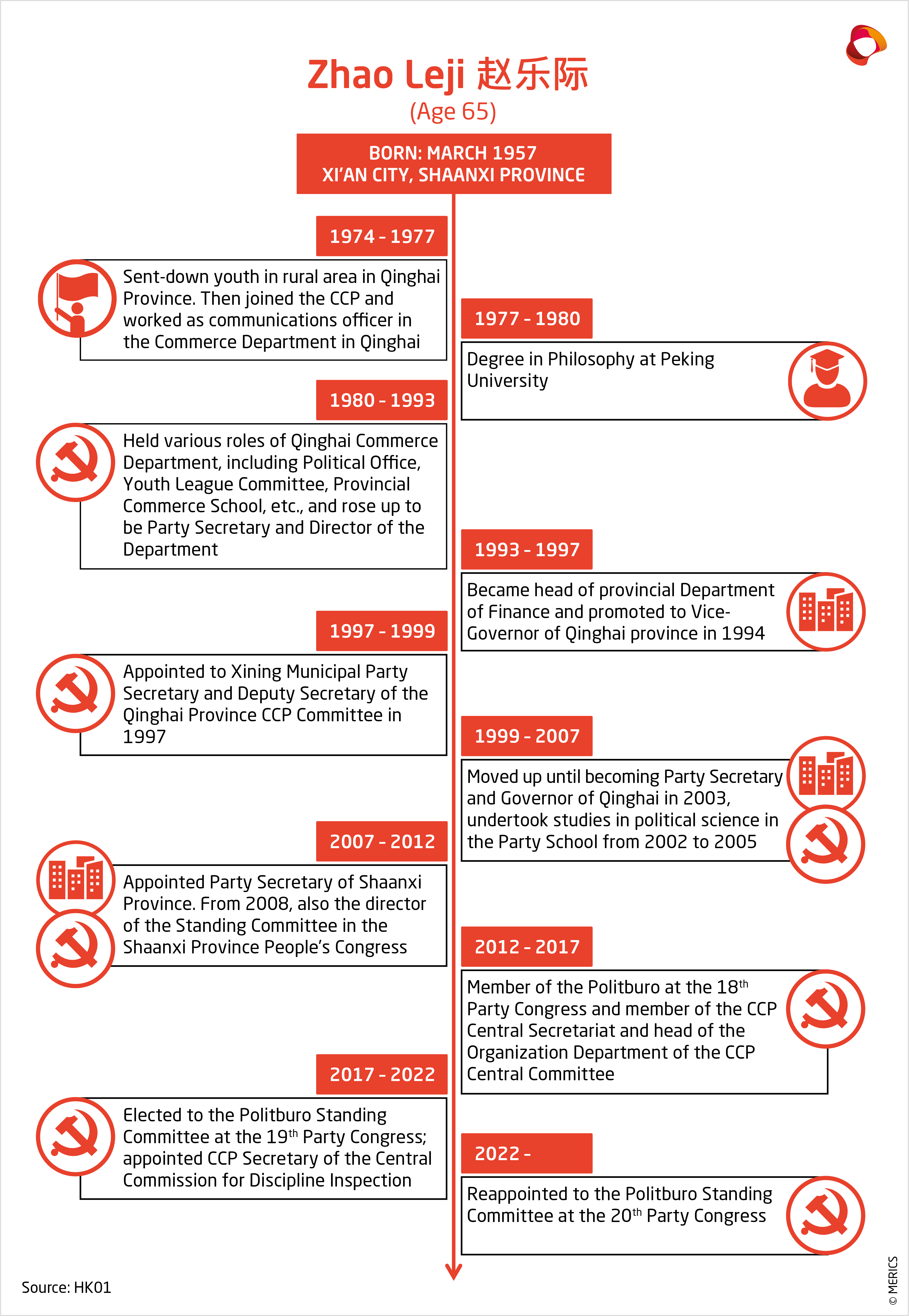 While Zhao Leji is usually not counted as part of Xi Jinping’s close network, he is viewed as a Xi-supporter. Zhao took over from Wang Qishan as the anti-corruption chief after the 19th Party Congress in the party’s Central Commission for Discipline Inspection (CCDI). There, he has implemented Xi’s anti-corruption campaigns against former justice minister Fu Zhenghua, and other big names including Xiao Yaqing, Sheng Guangzu, Sun Lijun. Zhao also reshaped the CCDI into the large and powerful system it is today, having investigated well over four million officials and focusing not only on corruption, but also on cadres’ discipline and ethical conduct.
