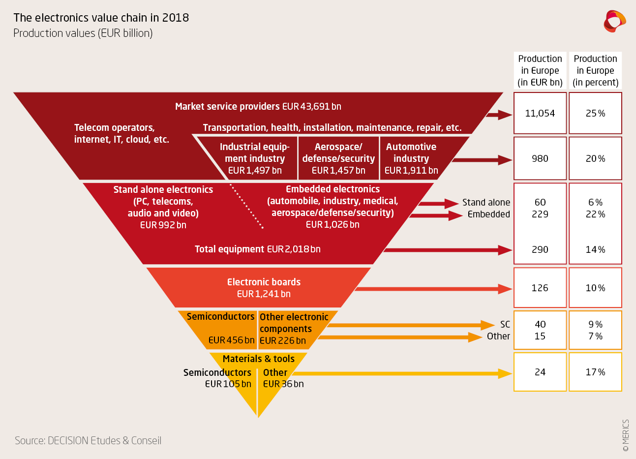 - Third, manufacturing capacities in Europe should be extended to reduce dependence on regions that are likely to be affected by geopolitical tensions. Considering the markets European-based companies address, this does not necessarily mean leading edge production but rather increased capacities down to 12 nanometer technology nodes. The technology node refers to the manufacturing process associated with a particular chip generation.