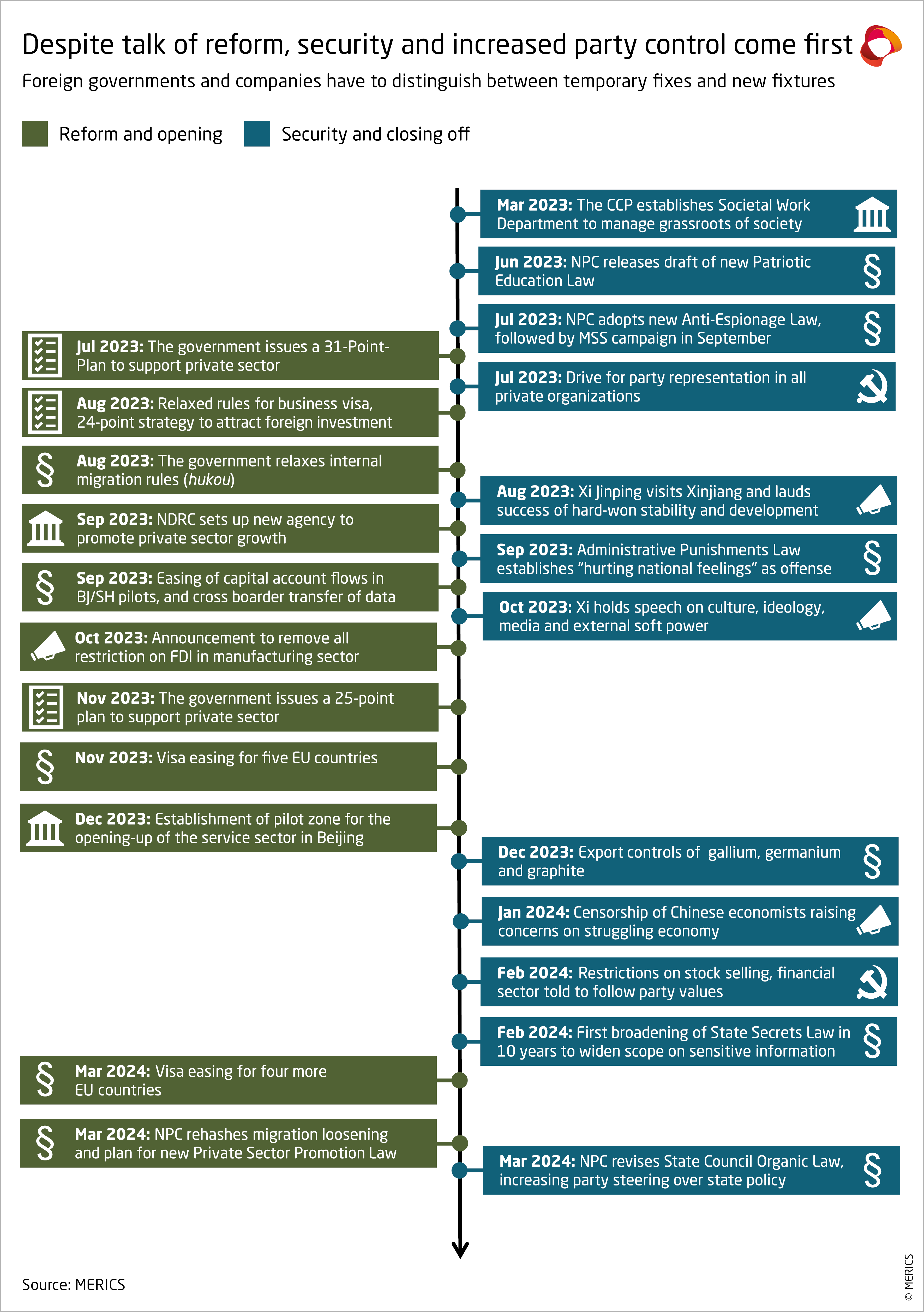 Foreign governments and companies should take a cue from these domestic actors and distinguish between temporary fixes and permanent fixtures. The NPC’s political rhetoric can be read as a continued commitment to reform and opening. But a closer look at policy in the past year reveals that many are familiar and may be rolled back if the leadership changes its mind – unlike security-focused changes, made more permanent through legal and institutional changes. Xi’s “reform and opening” remain selective and conditional. International stakeholders should use the opportunities they offer, but not lose sight of underlying risks.