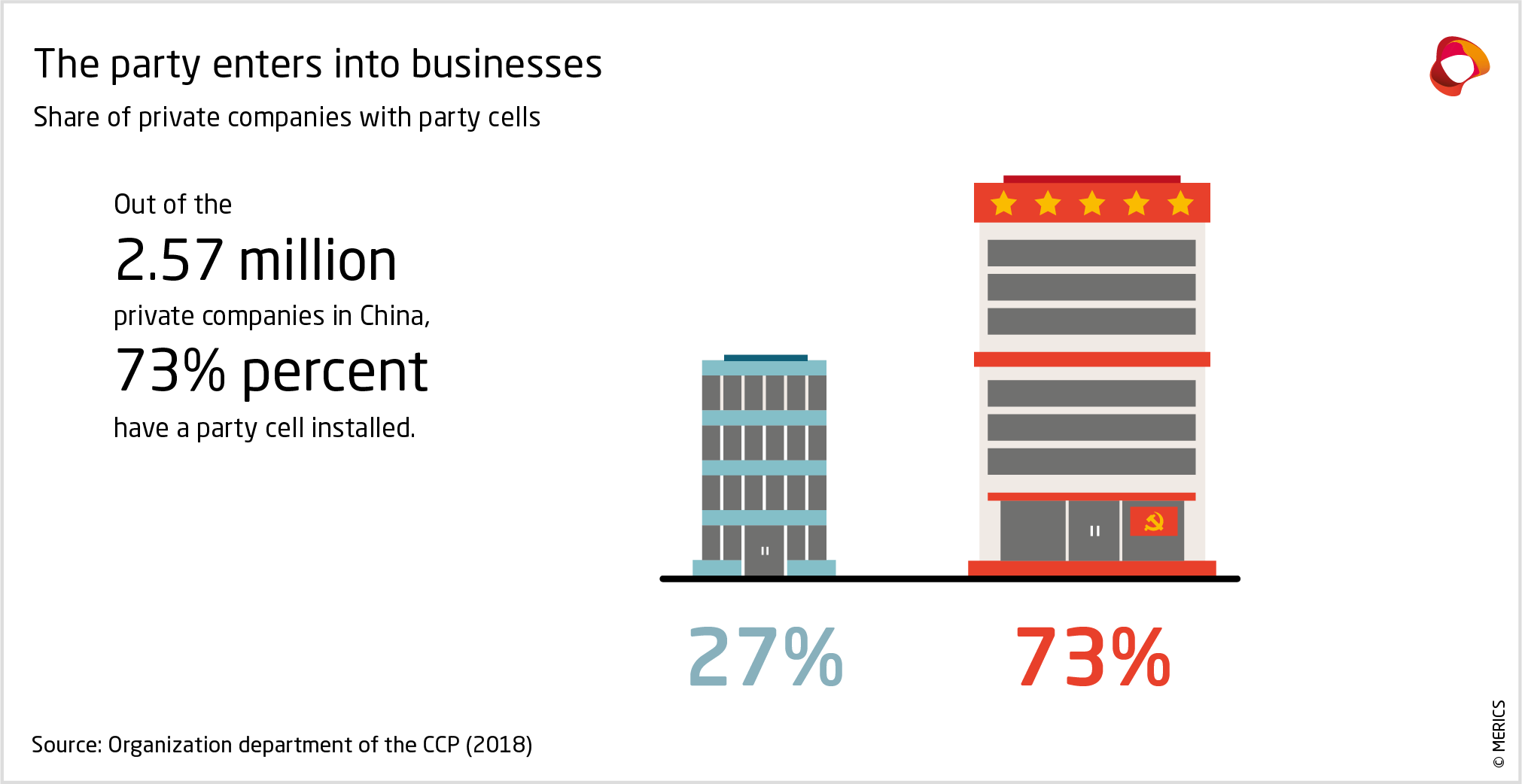 The CCP is pushing its organization deeper into the economy. Any organization with three or more CCP members has to establish a party group – and most companies have done so by now. CCP representation and mobilization at grass-roots level and in private companies is likely to grow even more under Xi Jinping.