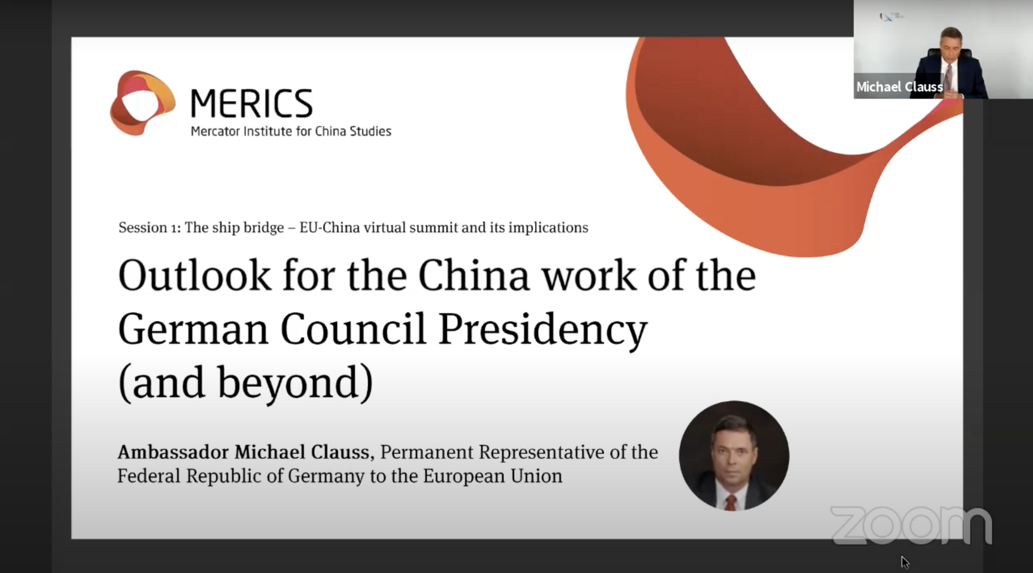 - Implications for the China work of the German Presidency of the Council of the EU Ambassador Michael Clauss, Permanent Representative of the Federal Republic of Germany to the European Union