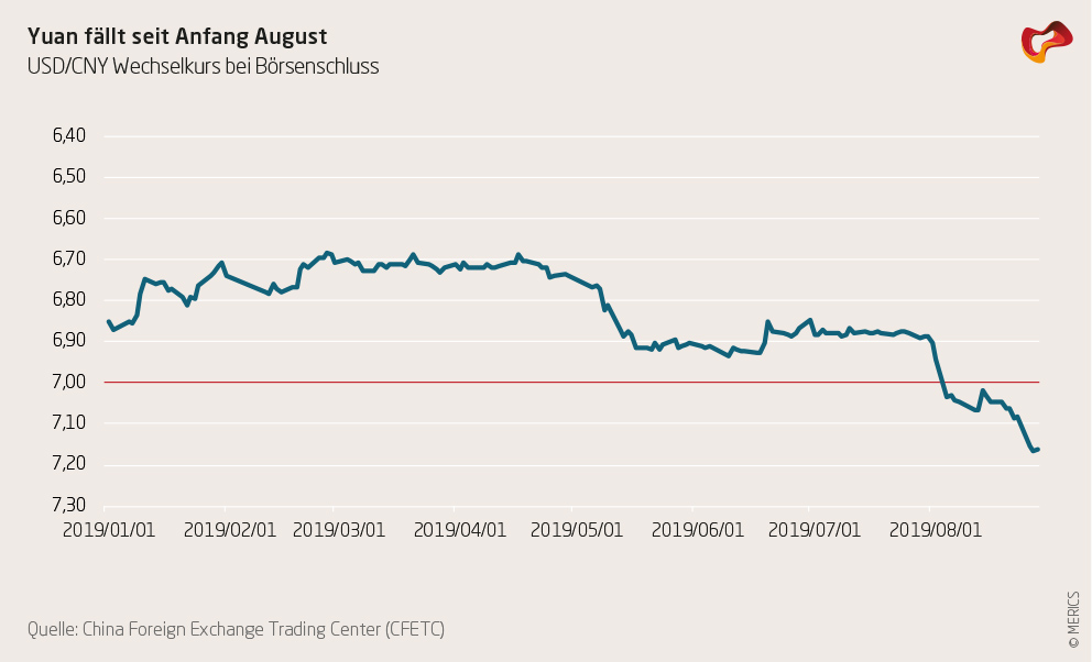 While US farmers suffered losses through tariffs, they appear to hit China harder – if not in trade. A depreciating currency will diminish the country’s external buying power - hurting the Belt and Road Initiative and companies with debt in dollars – and could trigger capital flight. The yuan has continued to depreciate against the dollar, now trading at 7.16 CNY per USD.