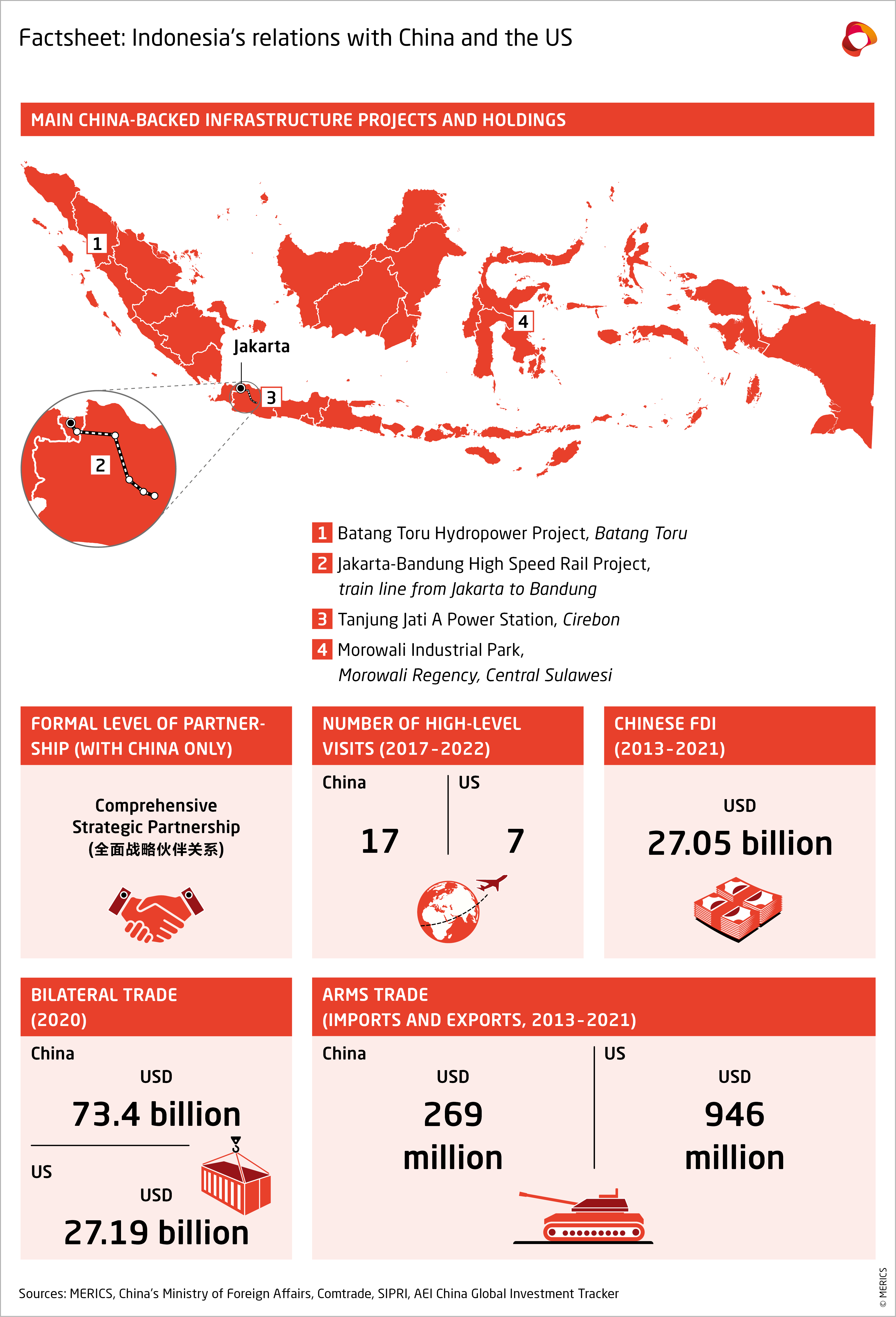 Beijing has actively promoted investment and infrastructure projects through the Belt and Road Initiative (BRI), whereas Indonesia has seen no clear economic dimensions to Washington’s Indo-Pacific strategy. However, US allies such as Japan, the EU, and Australia have sought to enhance economic relations with Indonesia; these countries are perceived as alternatives to China, so Jakarta applies a hedging strategy. The United States seemingly prefers to support other regional countries such as Singapore and Vietnam when it comes to business opportunities and investment.