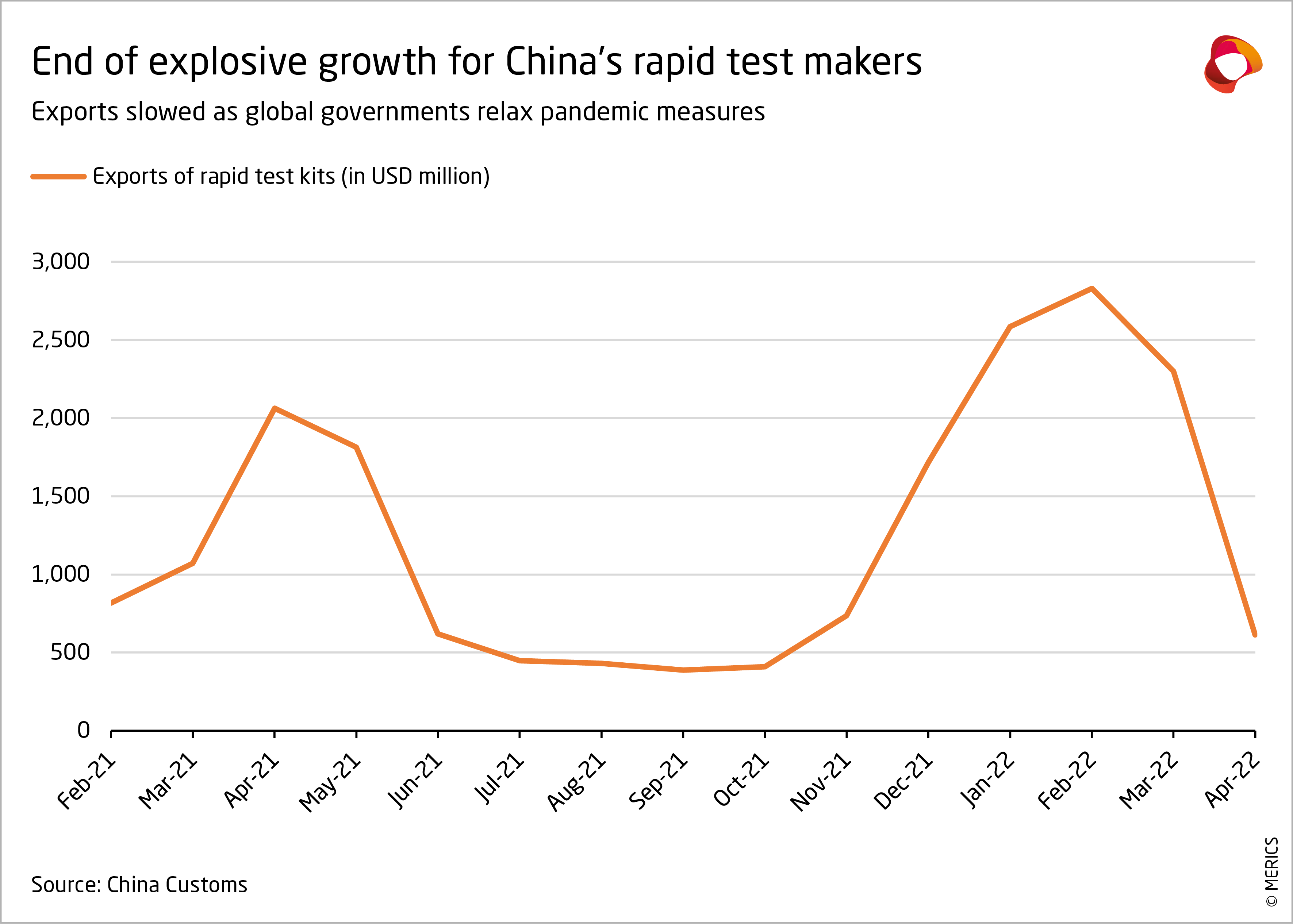 But with many countries around the world now rolling back their testing regimes, orders have slowed. Exports of test kits were down by more than 70 percent month-on-month in April this year. Luckily for these Chinese companies, domestic demand may now fill the gap. The country’s healthcare system is overwhelmed by having to test millions of residents in the latest wave of outbreaks. To help ease the pressure, the Chinese government approved the use of self-administered rapid test kits earlier this year.