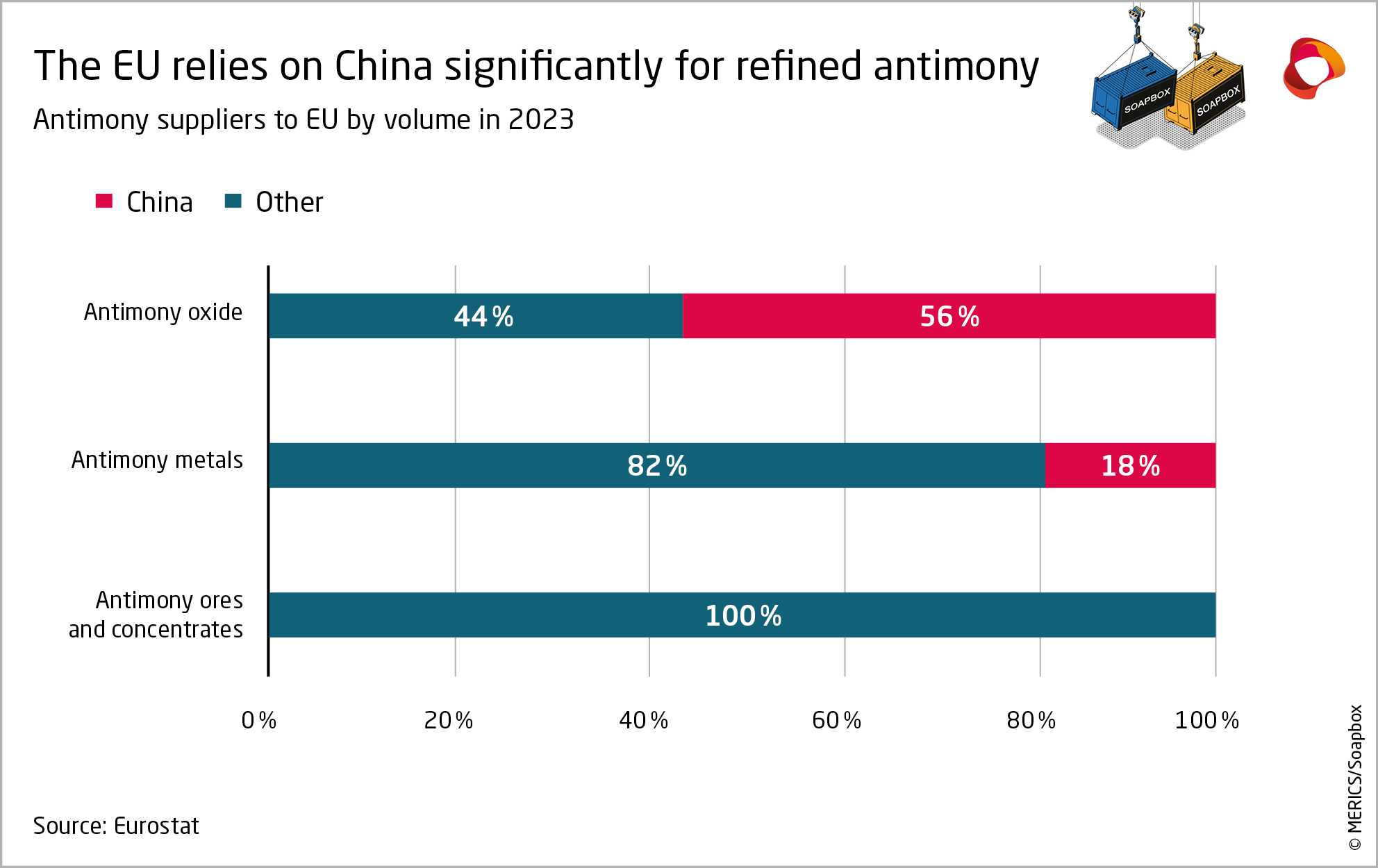 The Soapbox-MERICS Data Highlight offers data visualizations of EU-China economic relations. We have partnered with trade specialist Rafael Jimenez Buendía, Lecturer of International Trade at Taltech University in Tallinn, Estonia, and co-founder of “Soapbox,” a free weekly newsletter focused on China trade. In this edition, Rafael and MERICS economics analyst François Chimits delve into the recent extension of Chinese export controls to another mineral. After germanium, gallium and some graphite in 2023, Beijing has included antimony in its export control regime. China is one of the world’s main producers and exporters of antimony.
