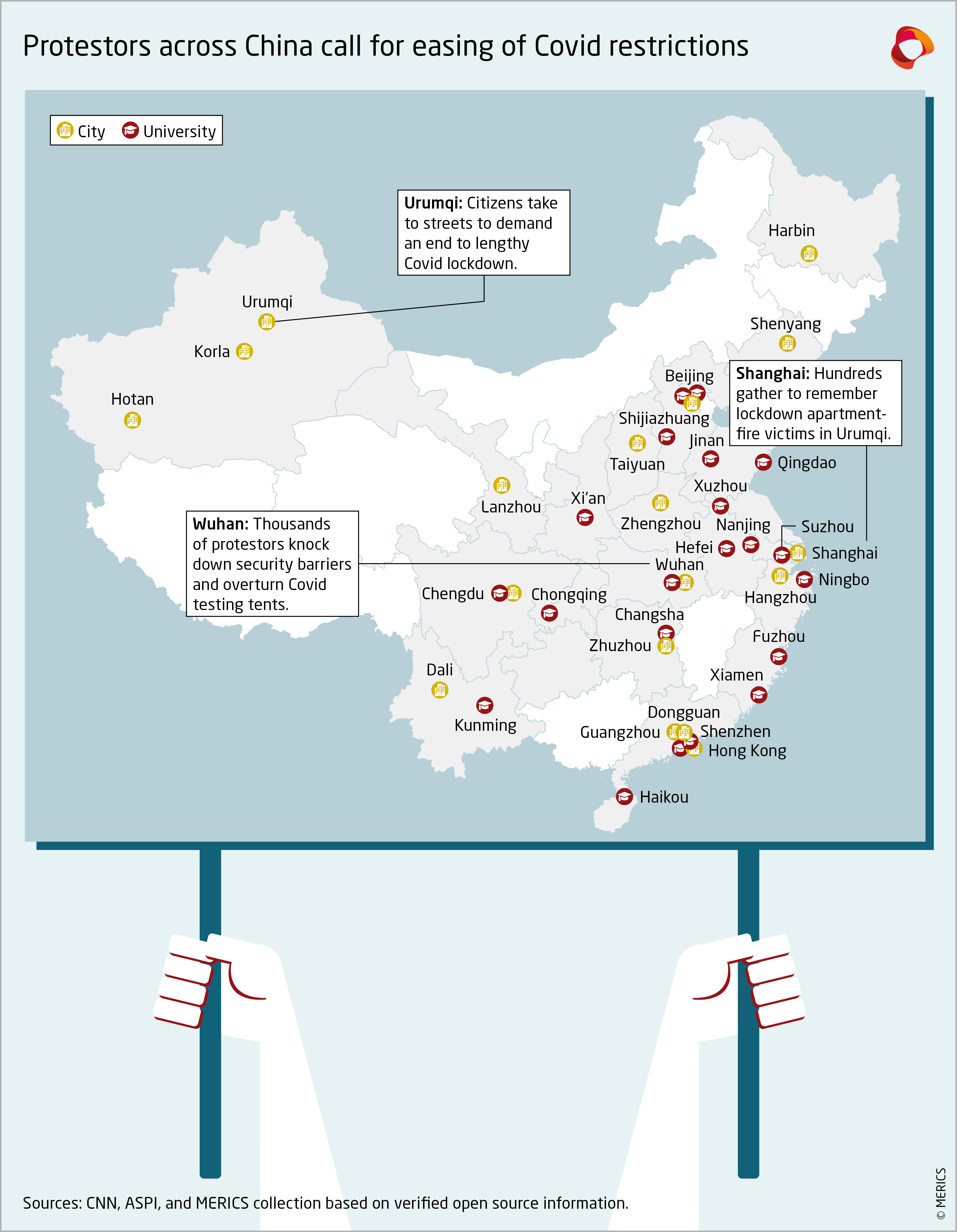 MERICS analysis: “Authorities hope to get away with walking a dangerous tightrope. In the wake of the protests, editorials in the party mouthpiece People’s Daily have stressed the commitment to the current strategy, while others like vice premier Sun Chunlan have highlighted the weakened pathogenicity of the Omicron variant and expressed optimism towards steps forward,” says MERICS Analyst Vincent Brussee. “Police will continue to contain protests, but China is running out of quick fixes and many of the root causes of protests will remain relevant in 2023. This conundrum can only be overcome by a forward-looking strategy focused on reducing arbitrary lockdowns while rapidly increasing vaccination rates.”