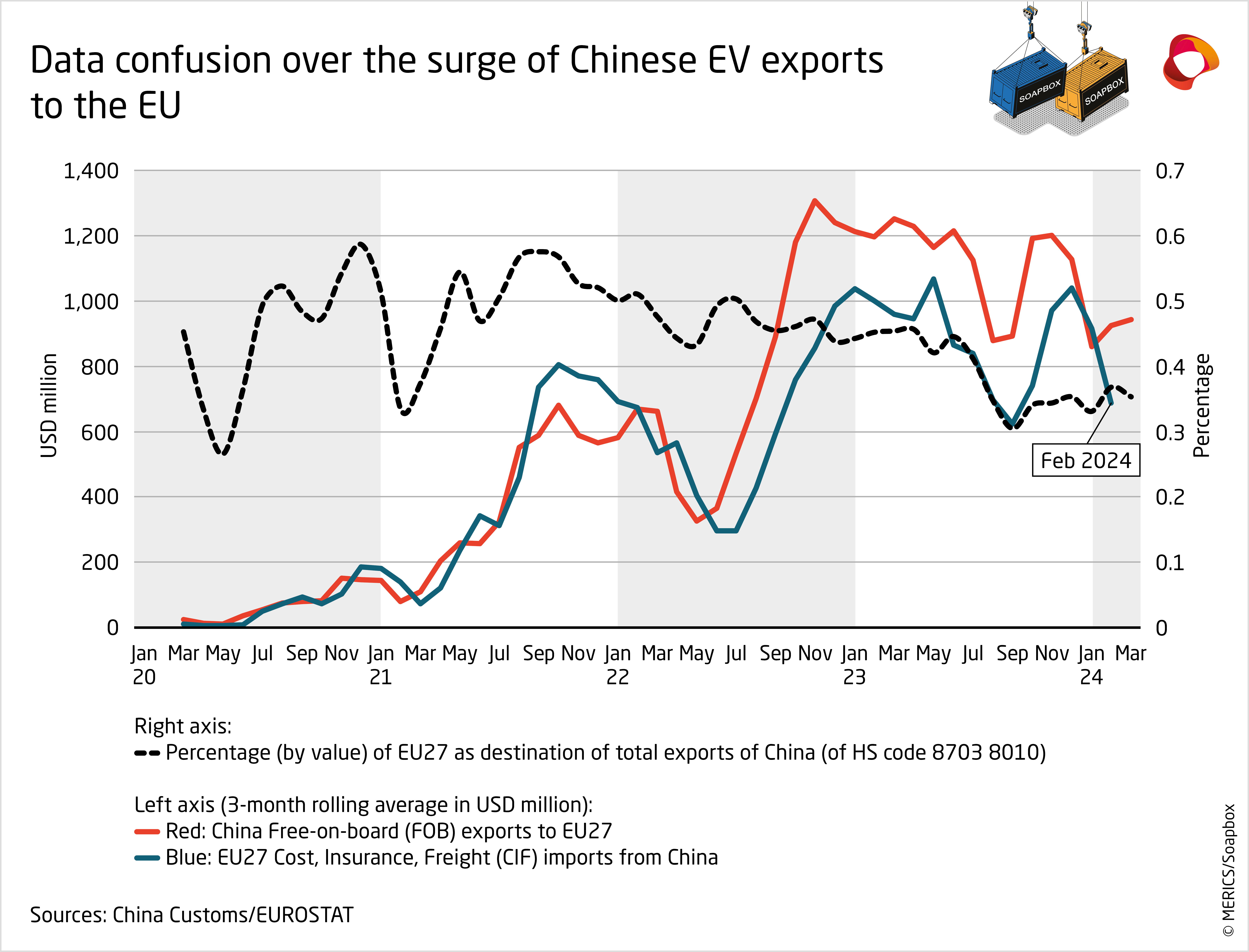 Europe-China 360° is proud to present a new regular section in our Brief, the “Soapbox – MERICS Data Highlight”, a visual discussion of topical issues in EU-China economic relations. We have teamed up with experienced trade specialist Rafael Jimenez Buendía, lecturer on International Trade at Taltech University in Talinn, Estonia, and co-founder of “Soapbox”, a free weekly newsletter solely focused on China Trade. Rafael and MERICS’ economic analyst Francois Chimits will comment on timely and relevant data regarding EU-China relations. We hope you enjoy our new supplement to this Brief.