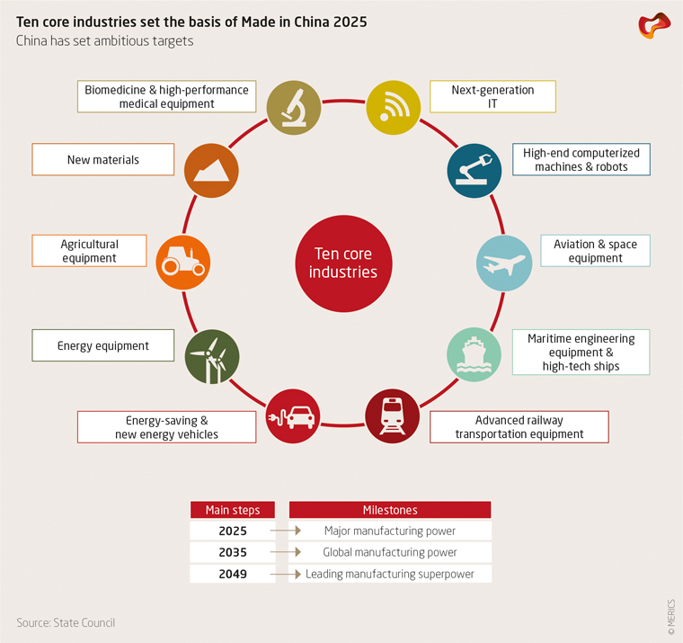 - A list of nine key technology areas and numerous sub-categories for the selection of firms, covering virtually all the key sectors outlined in the Made in China 2025 strategy (see exhibit)