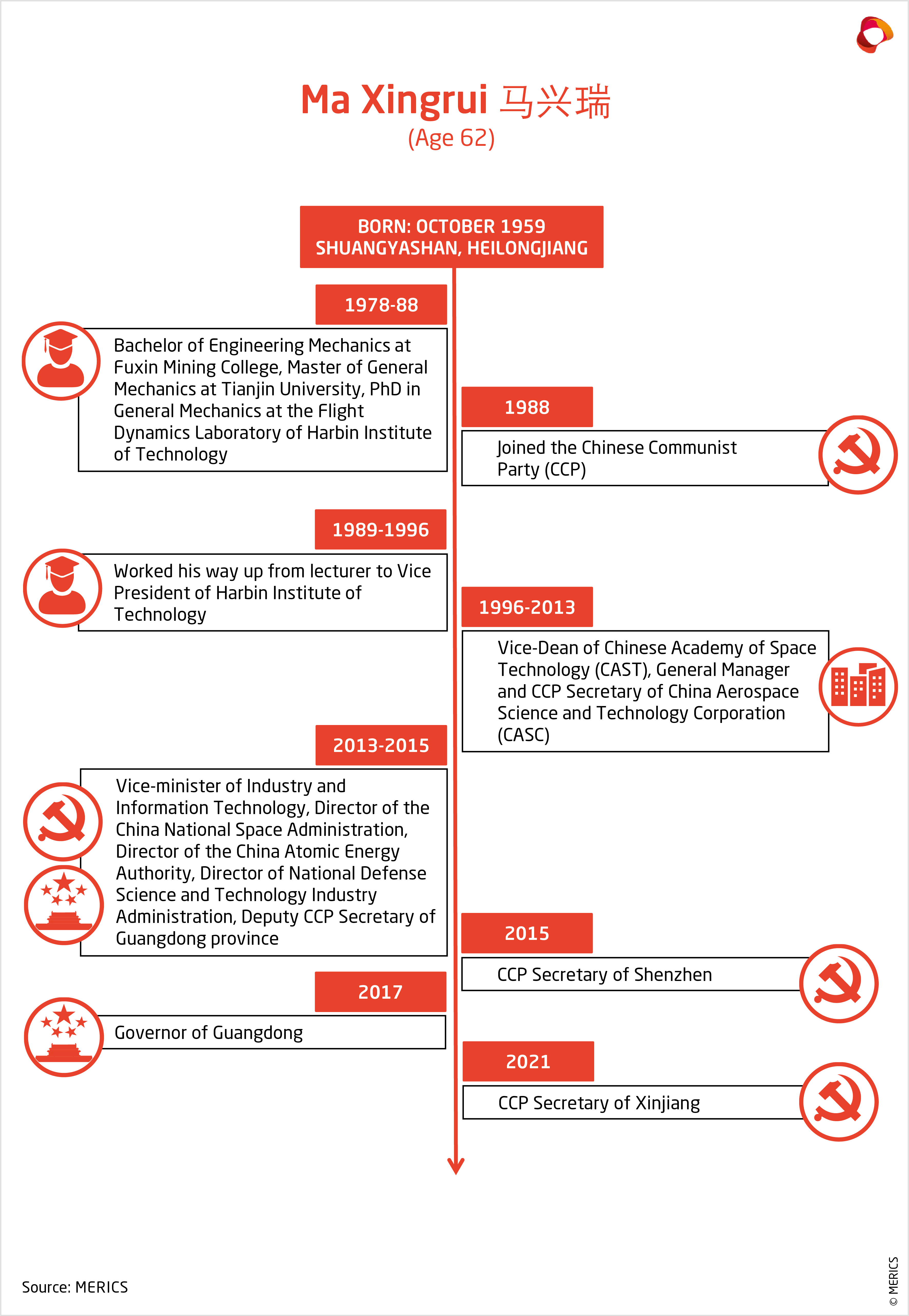Ma holds a PhD in mechanics and brings a rare versatility to the job: administrative experience after serving as Governor in Guangdong (2016-21) and business savviness after managing state-owned aerospace enterprises. He is considered part of the “aerospace-clique” (航天系) of officials with experience in space and defense, areas crucial for China’s industrial strategy and national security.