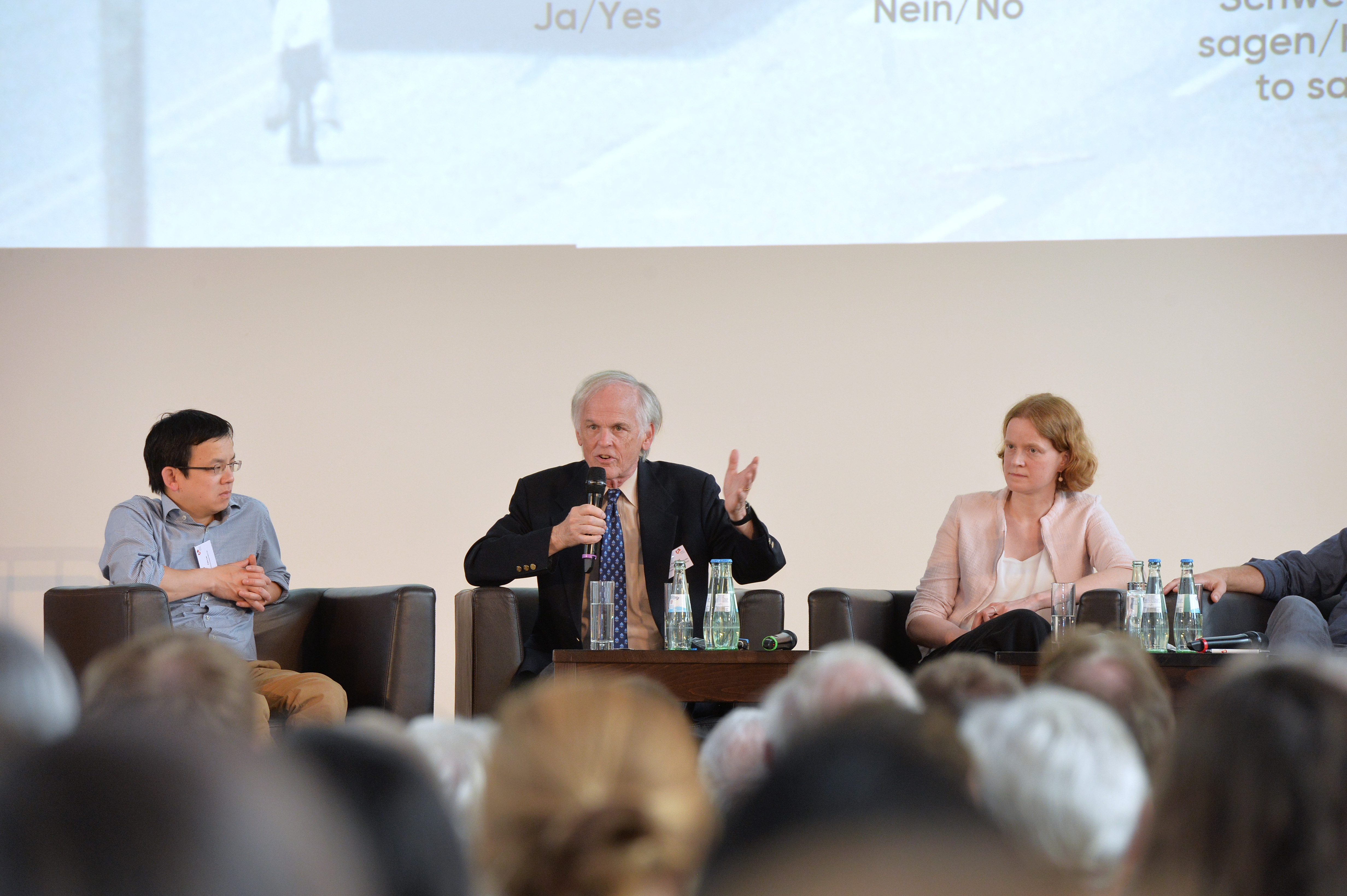 Auf dem Panel sitzen die Professoren Perry Link (Princeton/Heidelberg), Sandra Heep (Bremen) und Daniel Leese (Freiburg). Ergänzt wird die Runde durch den langjährigen China-Korrespondenten von taz und Zeitonline Felix Lee. Perry Link ist mit dem Publikum nicht ganz einig: „Aus Sicht der chinesischen Führung war die gewaltsame Unterdrückung wahrscheinlich nicht zu vermeiden“, sagt er. Viele Menschen würden vergessen, dass die Proteste in ganz China stattfanden. „Es gab große Demonstrationen in mehr als 80 Städten“, weiß er, „aber als die Panzer kamen, wurden die Menschen verschreckt.“