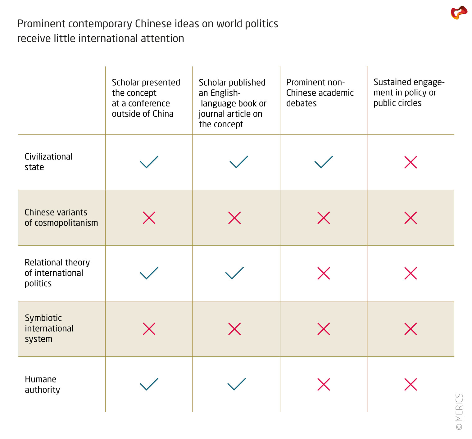 Selection of material for this analysis: In China’s almost 30 leading academic journals on International Relations (IR),13 scholars discuss alternative forms of world politics extensively. This makes identifying the most compelling ideas challenging. Two criteria have been used to select the articles introduced here: First, the author considered articles published in the ten most important Chinese-language IR journals between 2012 and the first half of 2018. From the tables of contents, she selected the articles with titles suggesting a conceptual discussion of international relations rather than an empirical assessment of China’s foreign policy.14 Second, the author considered recent publications of the ten most prominent theory-focused Chinese IR scholars as identified by their peers.15 The selection of ideas that challenge core tenets of mainstream IR thinking was deliberate. As much as this approach tries to be transparent on how contributions were selected, it is beyond the scope of this report to provide a full account of how Chinese scholars think about the future of the world order.