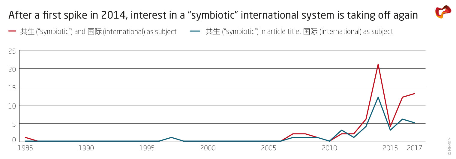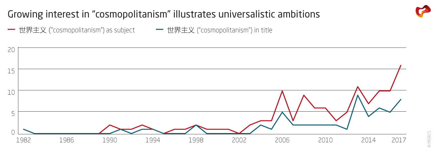 Scholarly debates in China about the features of a future world order have yet to receive broad international attention. Some more mainstream Chinese scholars, including Wang Jisi, Zha Daojiong, Chen Dingding to name only a few, received parts of their training in the West and continue to be engaged internationally.12 To some extent, Chinese international relations scholars will continue to think inside the framework of a global capitalist modernity and post-WW2 international order. More transformative intellectual work and far-reaching concepts such as the one of a “symbiotic international system” or Chinese variants of cosmopolitanism remain confined to Chinese-language debates. While scholars outside of China pay attention to these discussions at least to a limited extent, the wider public in Europe does not (yet) engage with transformative Chinese ideas on world politics (cf. Figure 2).