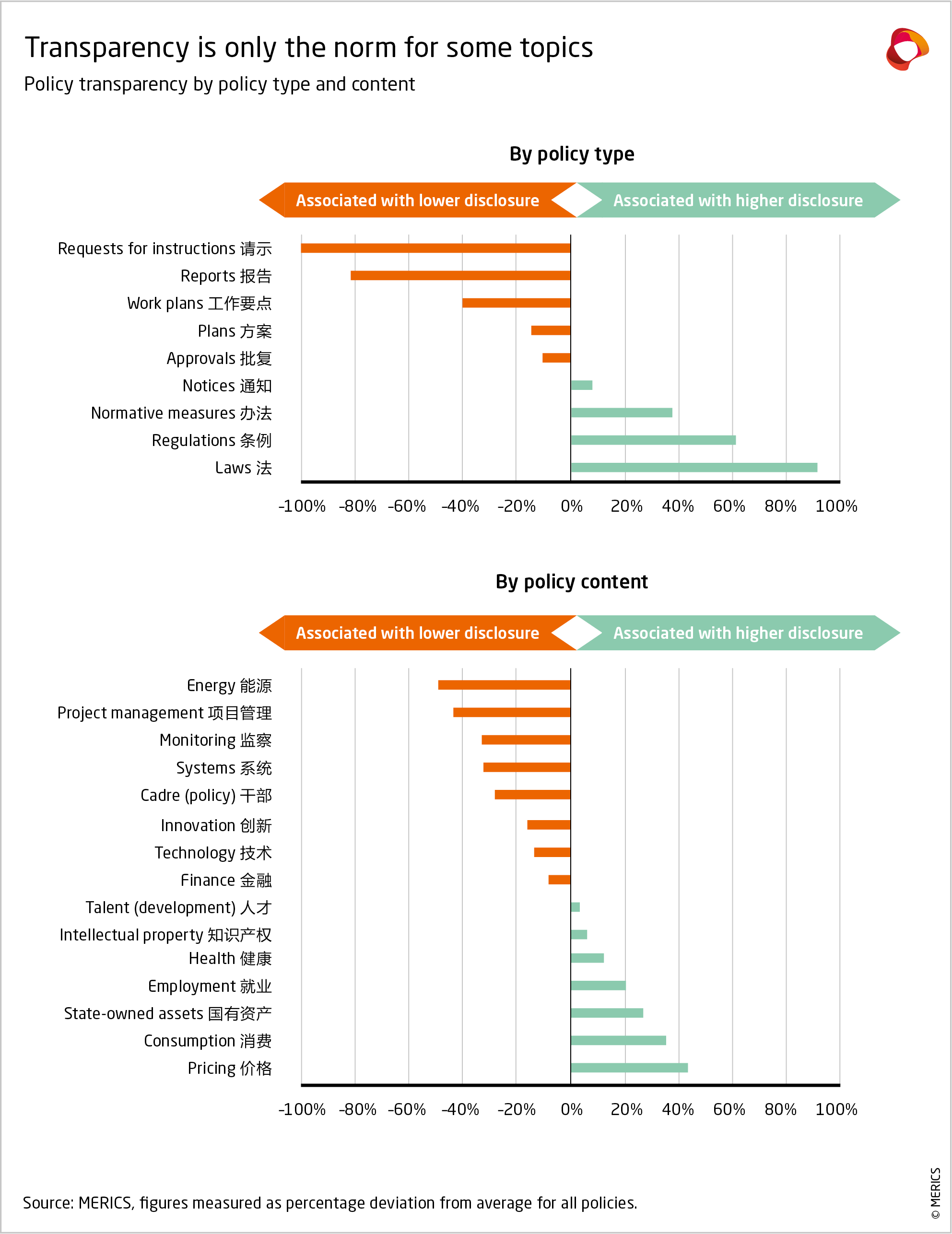 Transparency of policy documents follows a relatively straightforward pattern: matters that directly affect citizens’ livelihoods or companies’ day-to-day operations are relatively transparent, while internal processes remain veiled in secrecy.