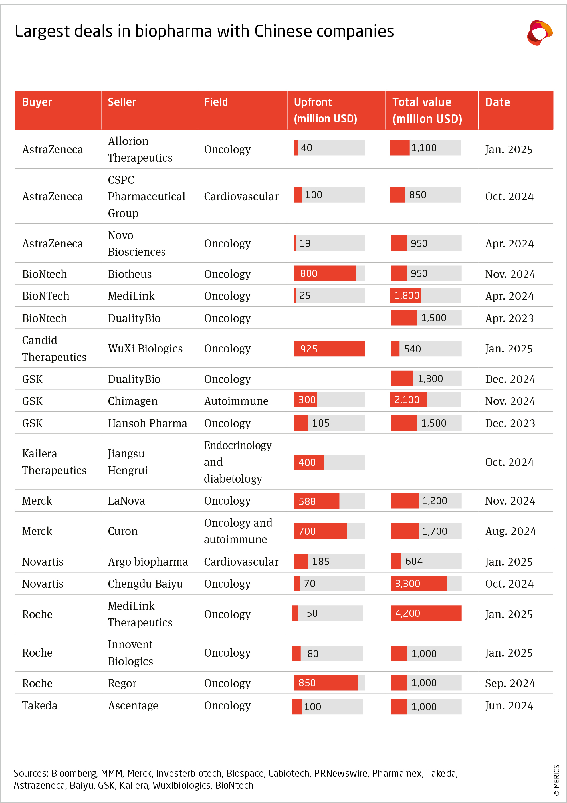 38 | Annalee Armstrong, “Big Pharma Rushes to China for Deal Prospecting Despite Regulatory Uncertainty,” BioSpace, 2025, https://www.biospace.com/business/big-pharma-rushes-to-china-for-deal-prospecting-despite-regulatory-uncertainty; James Waldron, “BioNTech Pays $25M to Strengthen ADC Bond with China’s MediLink,” Fierce Biotech, 2024, https://www.fiercebiotech.com/biotech/biontech-pays-25m-upfront-strengthen-adc-bond-chinas-medilink; Innovent Biologics, “Innovent Enters into Exclusive Global License Agreement with Roche for Novel DLL3 Antibody Drug Conjugate,” 2025, https://www.prnewswire.com/news-releases/innovent-enters-into-exclusive-global-license-agreement-with-roche-for-novel-dll3-antibody-drug-conjugate-302340668.html; Bloomberg, “Big Pharma’s Bet on China Biotech Is a Rare Trade Bright Spot.”