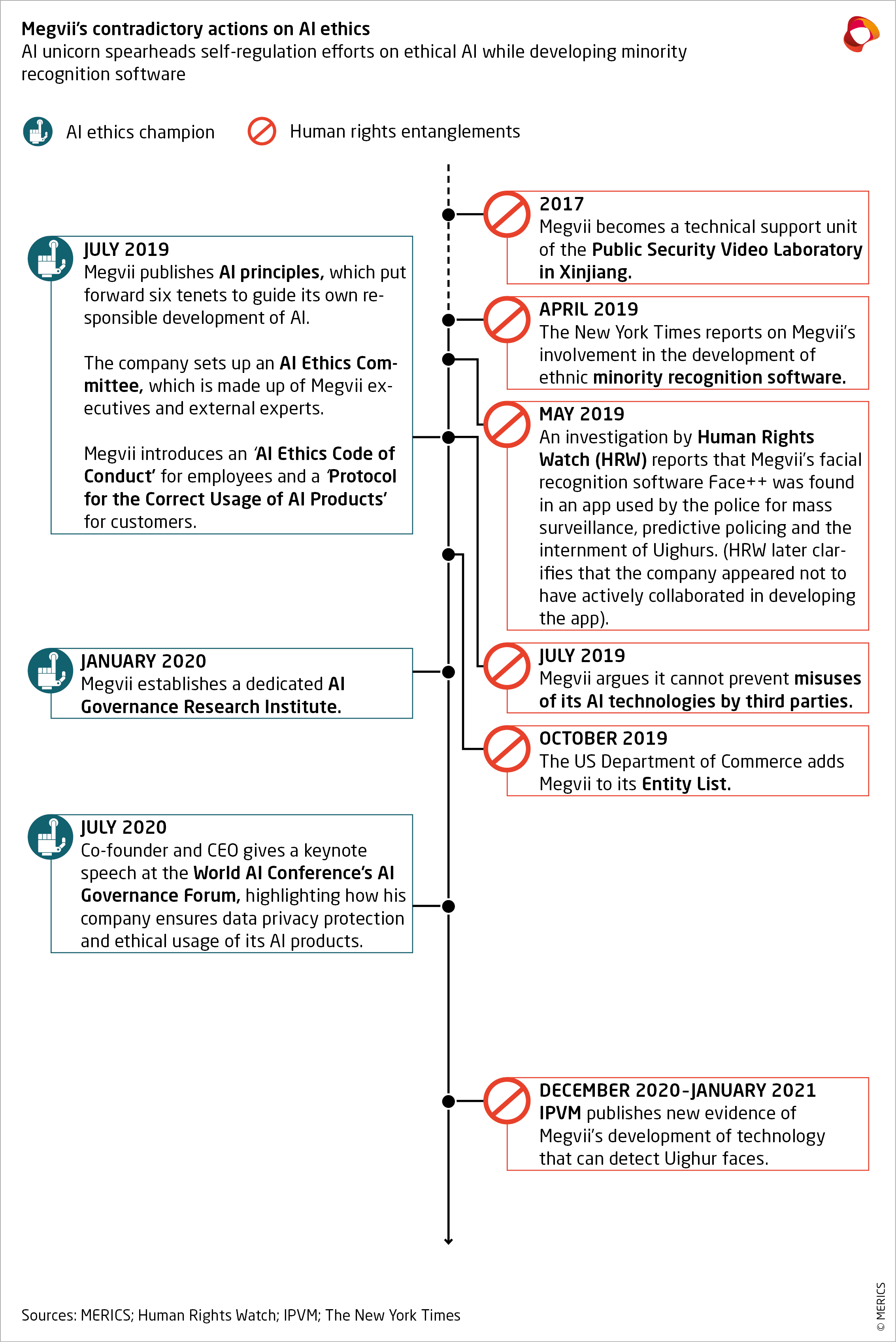 Megvii is one of the few companies to create internal structures such as an AI Ethics Committee to oversee the implementation of its AI principles. This committee is said to make recommendations to the board based on internal investigations and a whistleblowing procedure. However, one listed international member says he never joined the committee and it remains unclear what kinds of changes – if any – it has effected.19