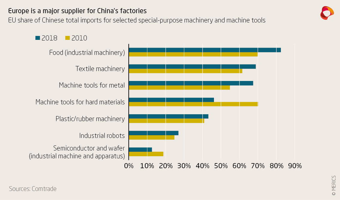 The strength of EU companies comes from their higher degree of specialization as well as from occupying niche markets. For some European machinery manufacturers, especially smaller ones, this means their relative dependence on the Chinese market is matched by China’s need for their technology to build competitive production.
