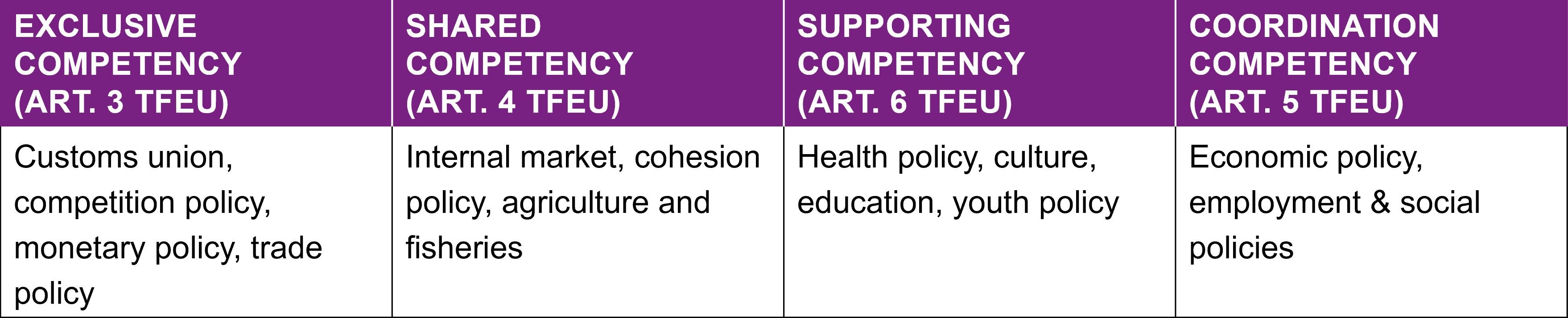 • What competencies does the EU have in my research field? If (close to) none, could the EU play a relevant role in the future?