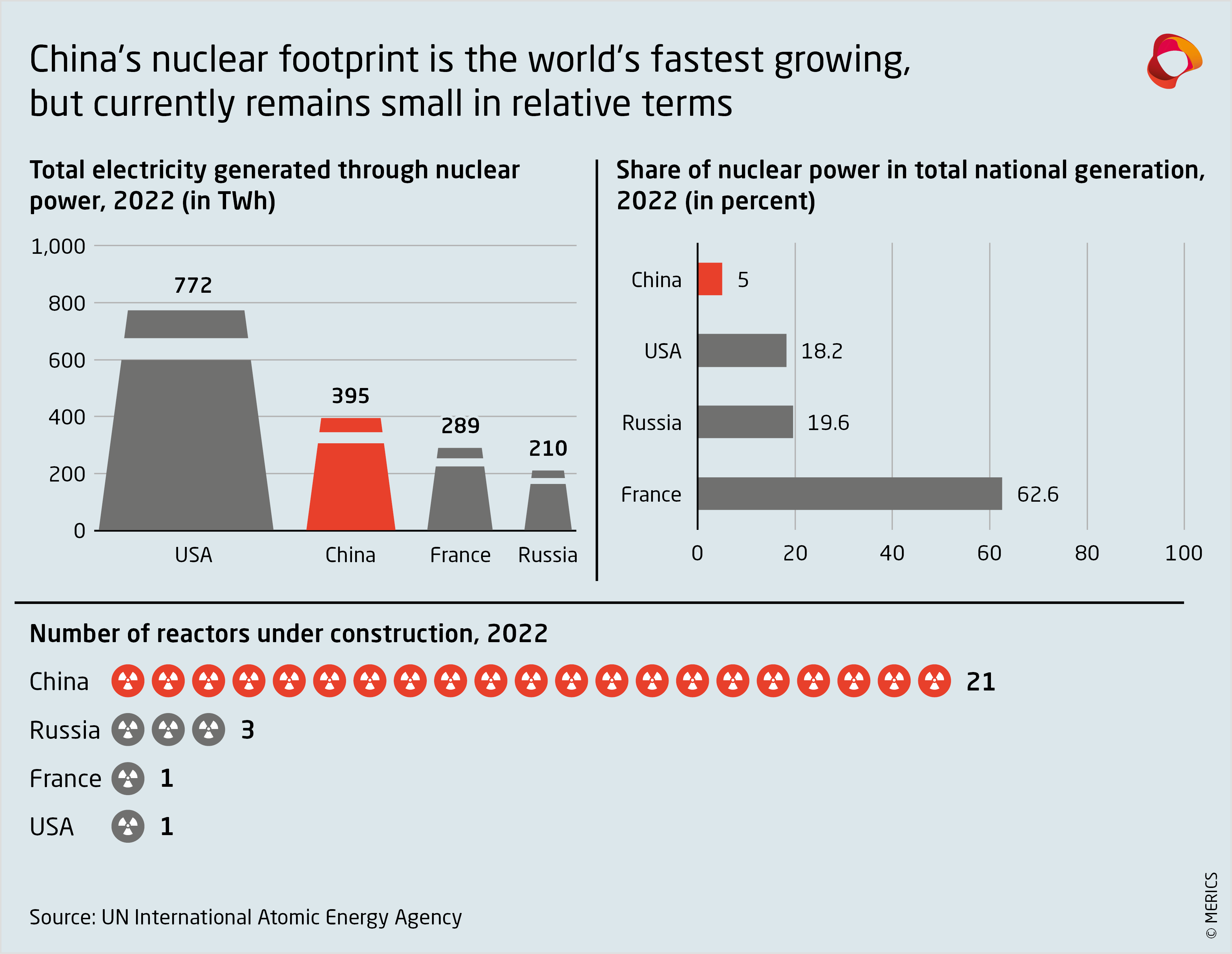 Finally, MERICS Senior Analyst Jacob Gunter covers China’s main nuclear energy companies in his Key Players segment. Having spent decades trying to catch up to European, Russian, and North American nuclear energy technology, China’s own nuclear champions are attempting to cement themselves overseas. However, these players are facing limitations abroad, in part due to the sheer demand for nuclear reactors in their home market (which sucks up much of the supply that China’s companies can fulfil), but their domestically developed Hualong One reactor design has yet to build up a track record to compete with long-established competitors’ designs. Instead of an immediate source of competition to European industry, like in the EV sector, the nuclear energy sector represents a medium to long term competition risk to European players. However, even then, China’s nuclear energy champions will be competing with a growing array of renewable and green energy types, so their success in capturing global nuclear market share is far from certain.